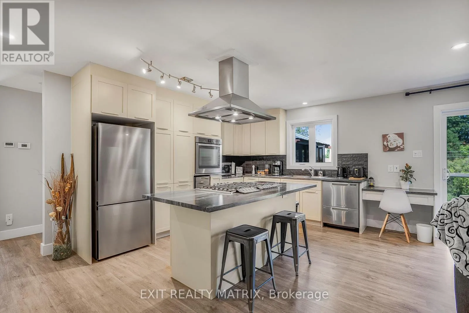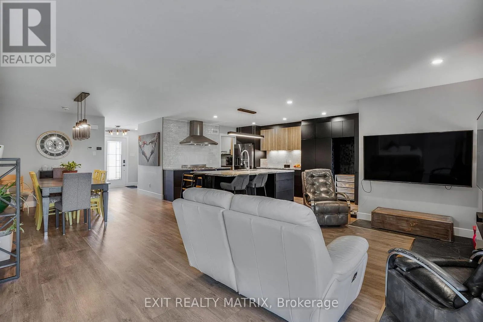 Unique 2023 Waterfront Home with Three Self-Contained Units Township of East Hawkesbury. Welcome tothis one-of-a-kind, custom-built 2023 property located on the picturesque Front Road in East Hawkesbury.Designed with versatility in mind, this unique home offers three self-contained units, making it ideal as afamily compound or an income-generating investment. The main unit showcases modern elegance with abright open-concept layout, a gourmet