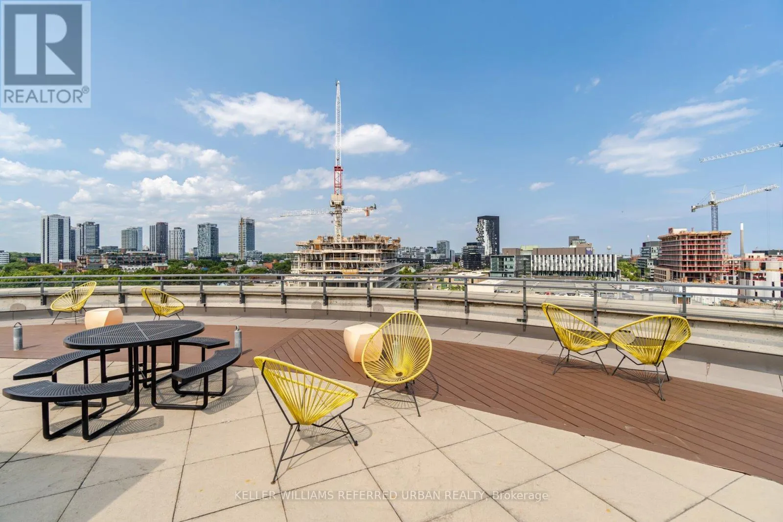 Experience refined urban living at Trinity Lofts, a boutique residence in Toronto’s vibrant King East Design District. This beautifully updated one-bedroom suite offers a fresh, modern aesthetic complemented by 9-foot concrete ceilings that deliver an authentic loft feel. The open-concept layout is thoughtfully designed for both comfort and functionality, extending seamlessly to an expansive south-facing terrace-perfect for outdoor lounging, entertaining,