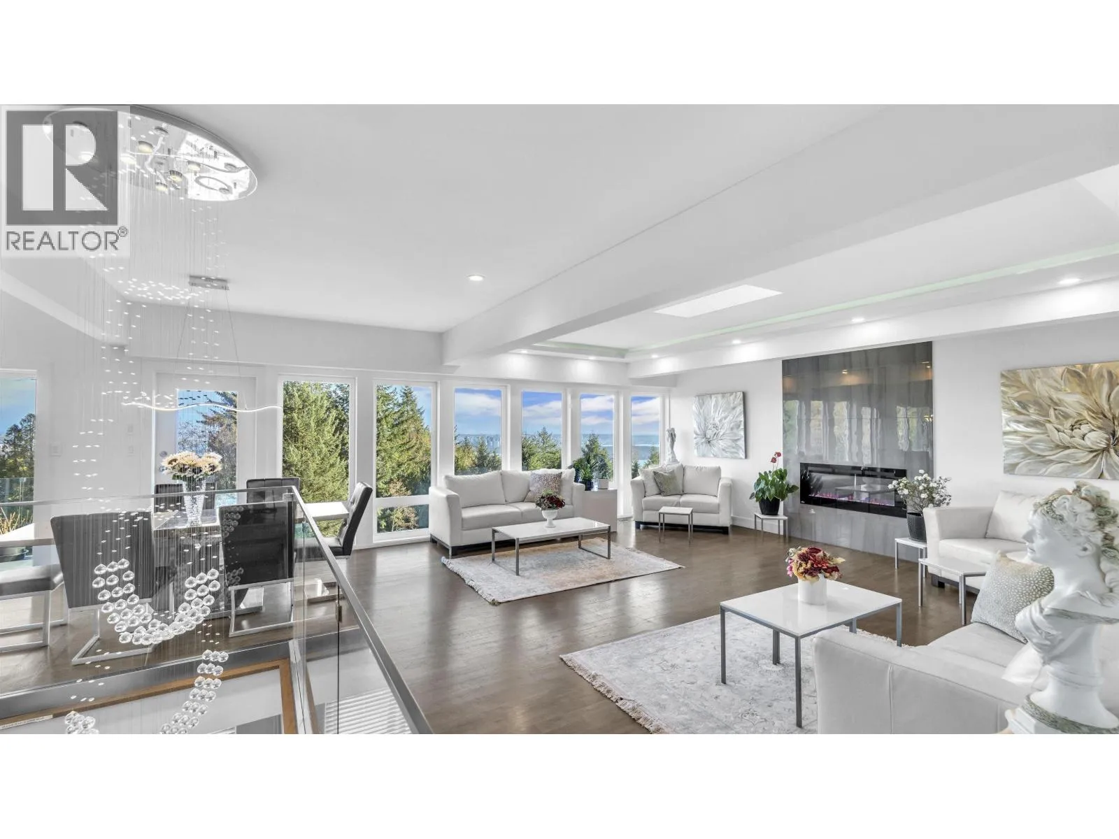 British Properties Meticulously renovated luxury Residence with Breathtaking Ocean & City View , Perched atop a private 18580, SF property at the end of a tranquil cul-de-sac, this stunning view residence offers privacy, sophisticated living. Extensively renovated with modern architectural design, 4,645 SF of contemporary elegance. Exceptional Features & Layout: 6 Bedroom & 6 washroom. Expansive Open-Concept Living – Seamless