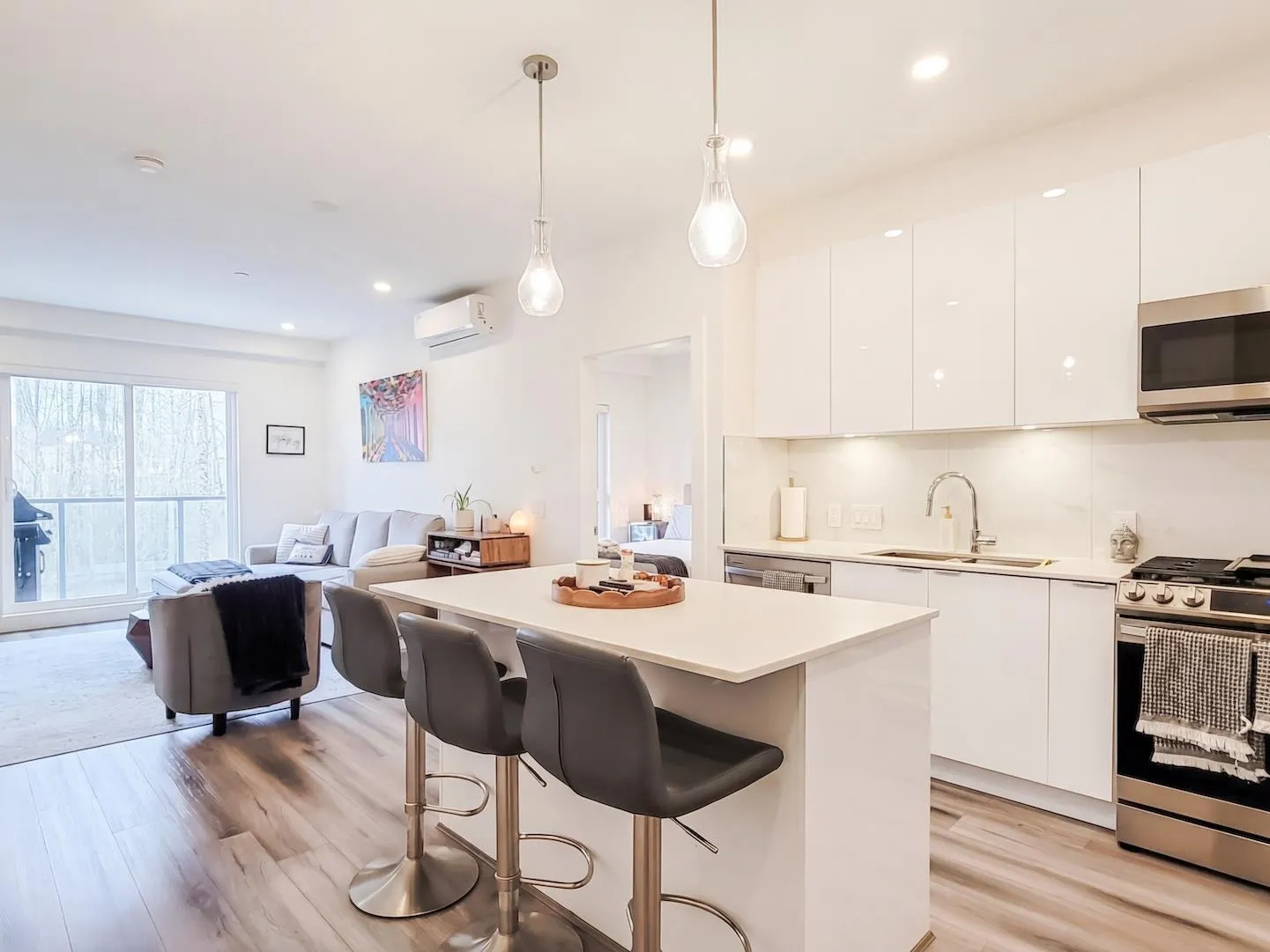 Welcome to Aristotle in Willoughby Heights! This spacious 2-bedroom, 2-bathroom + den condo offers 920 sqft of modern living. The den is the size of a full bedroom, complete with a closet but no window-ideal for a home office or guest room. Enjoy an east-facing entrance, open layout, air conditioning, and a private balcony perfect for morning coffee. The kitchen