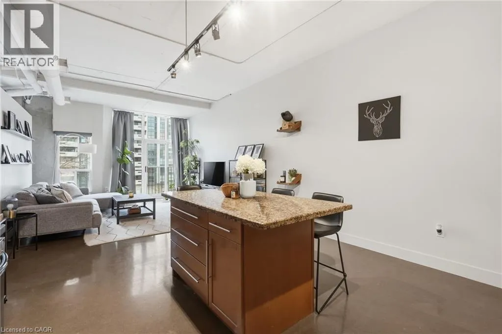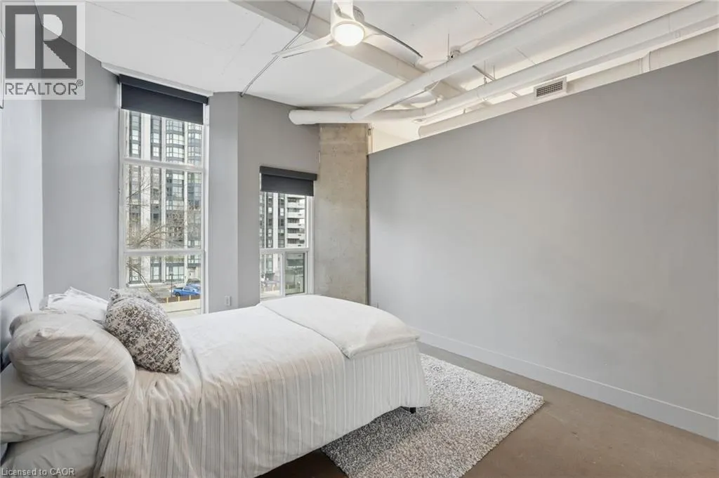 Welcome to Core Lofts, a unique conversion of the historic Bell Canada building in the heart of downtown Hamilton. This spacious Lincoln model offers approximately 1,100 square feet of loft-style living with 10+ ft ceilings, floor-to-ceiling windows and polished concrete floors that give the space its signature feel. Filled with great afternoon light from its west-facing exposure, the unit features