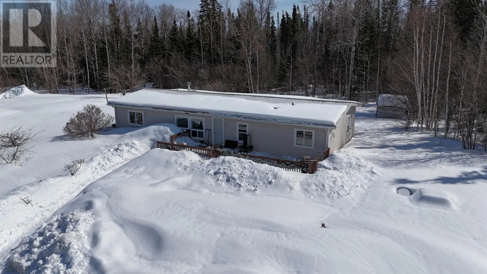 Located in the Town of Hudson within the Municipality of Sioux Lookout, this 3-bedroom, 2-bathroom single-level 1994 double wide modular home offers comfortable living in a quiet setting on the outskirts of town. The very spacious open concept layout provides a bright and inviting living, dining, and kitchen area, ideal for families or entertaining, complemented by a propane fireplace in