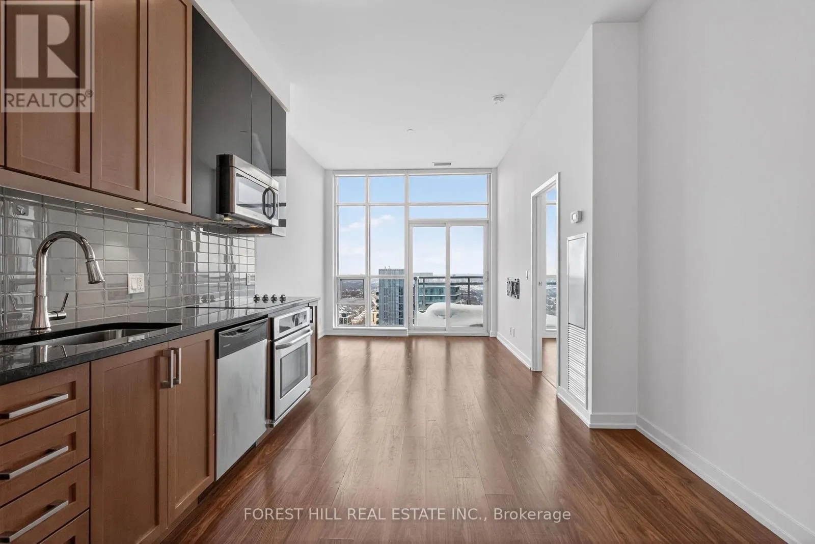 A bright LOWER PENTHOUSE facing East with 180 degree unimpeded views, this modern 1 bedroom plus den spacious condo is located in the prestigious Madison Building. The versatile den features a closet and can be used as a second bedroom or home office. Open-concept layout with 10-ft ceilings, floor-to-ceiling windows, laminate flooring throughout, and stainless steel appliances. Includes a heated