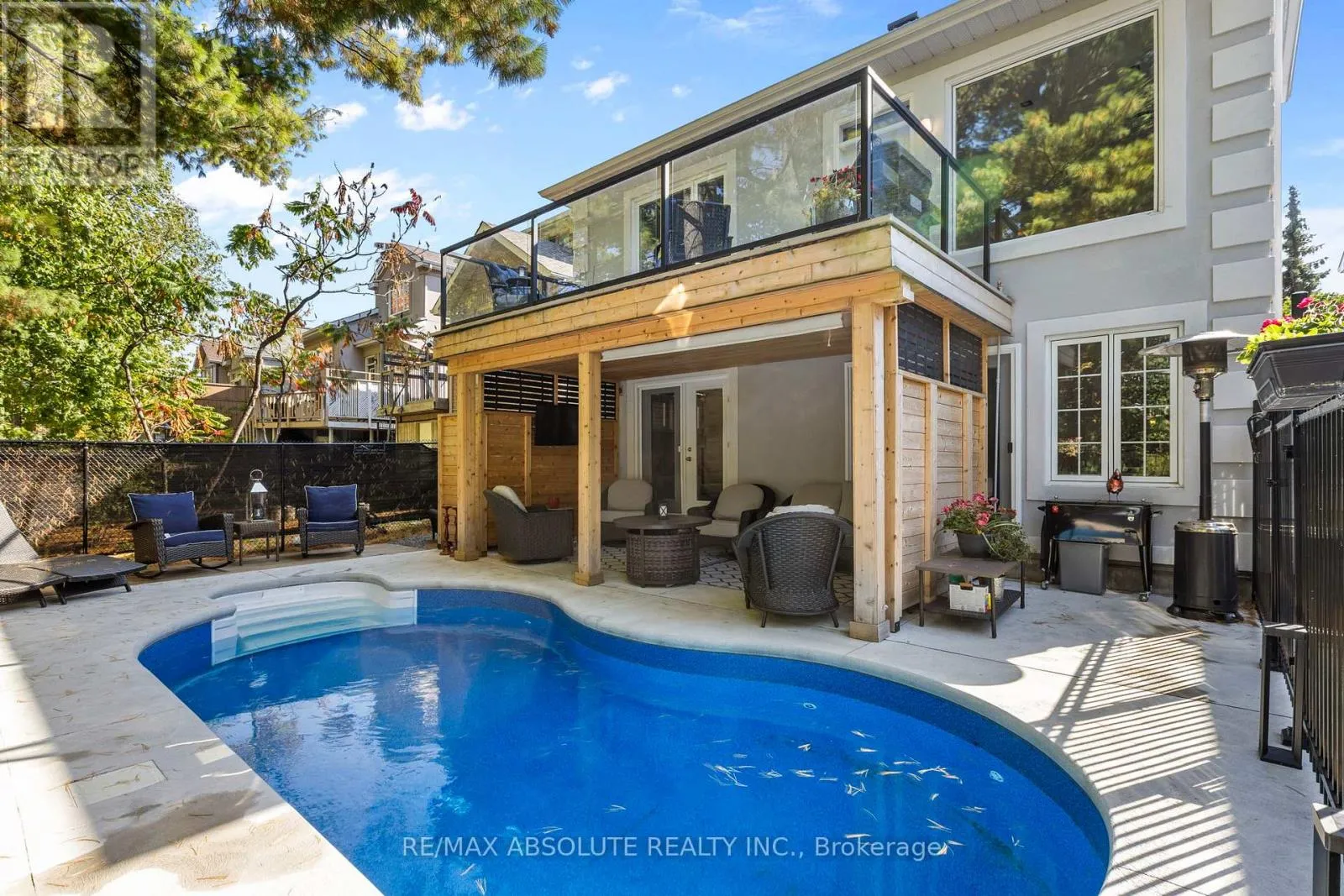 ONE OF A KIND on the Kanata Golf Course! Incredible views from your private backyard that is complete with a balcony overlooking the mature trees, a perfect very easy to manage salt water pool (20 FT X 12FT) & a covered ALL cedar “Florida” space! This open airy home offers around 2800 square feet! of finished space (including lower level)