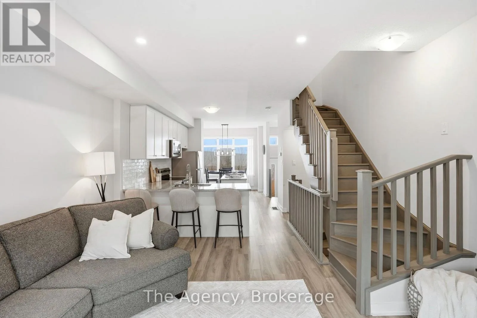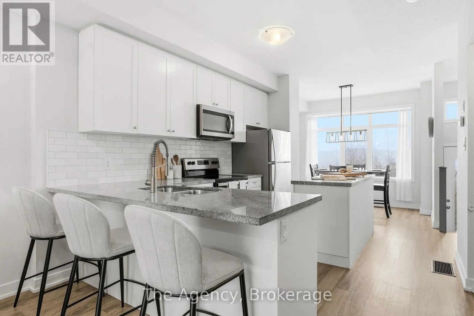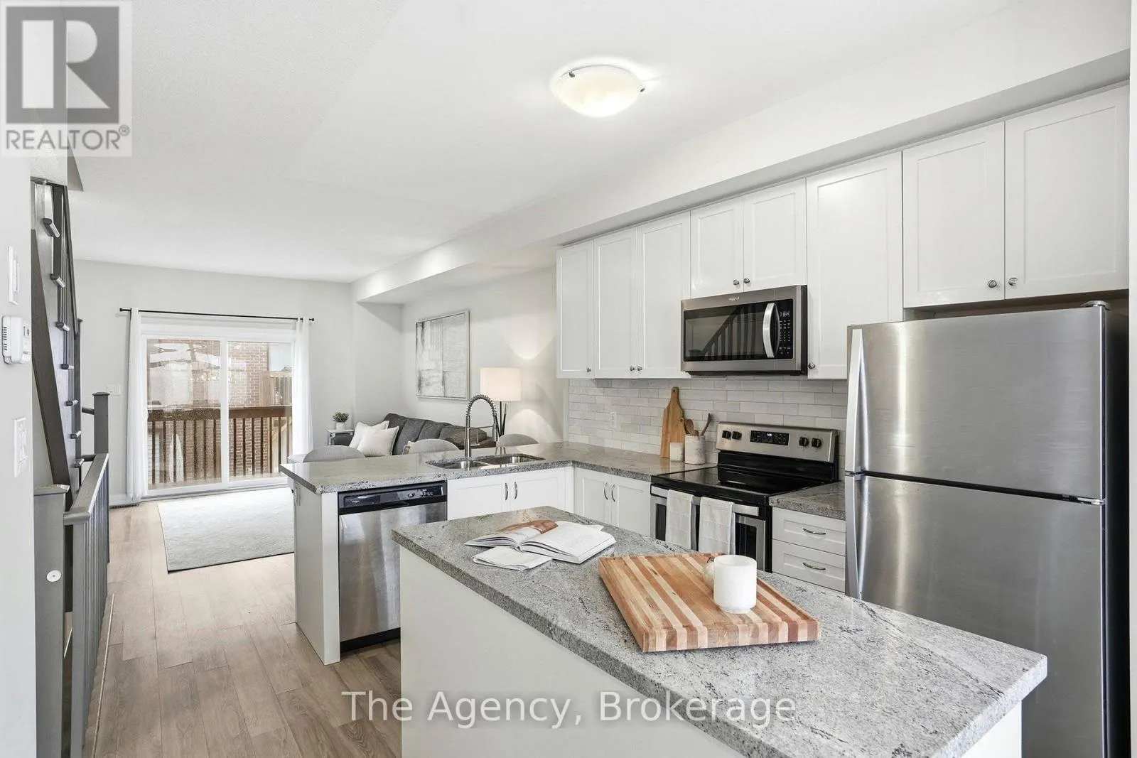 Welcome to this bright and thoughtfully designed 2-bedroom, 1.5-bathroom home in sought-after Ancaster. With 9-foot ceilings, the second floor features an open-concept living room, kitchen, and dining area. The spacious living room with pot lights opens onto a deck, while the kitchen includes granite countertops, shaker cabinetry, an island, and a peninsula with seating that provides additional storage and counter