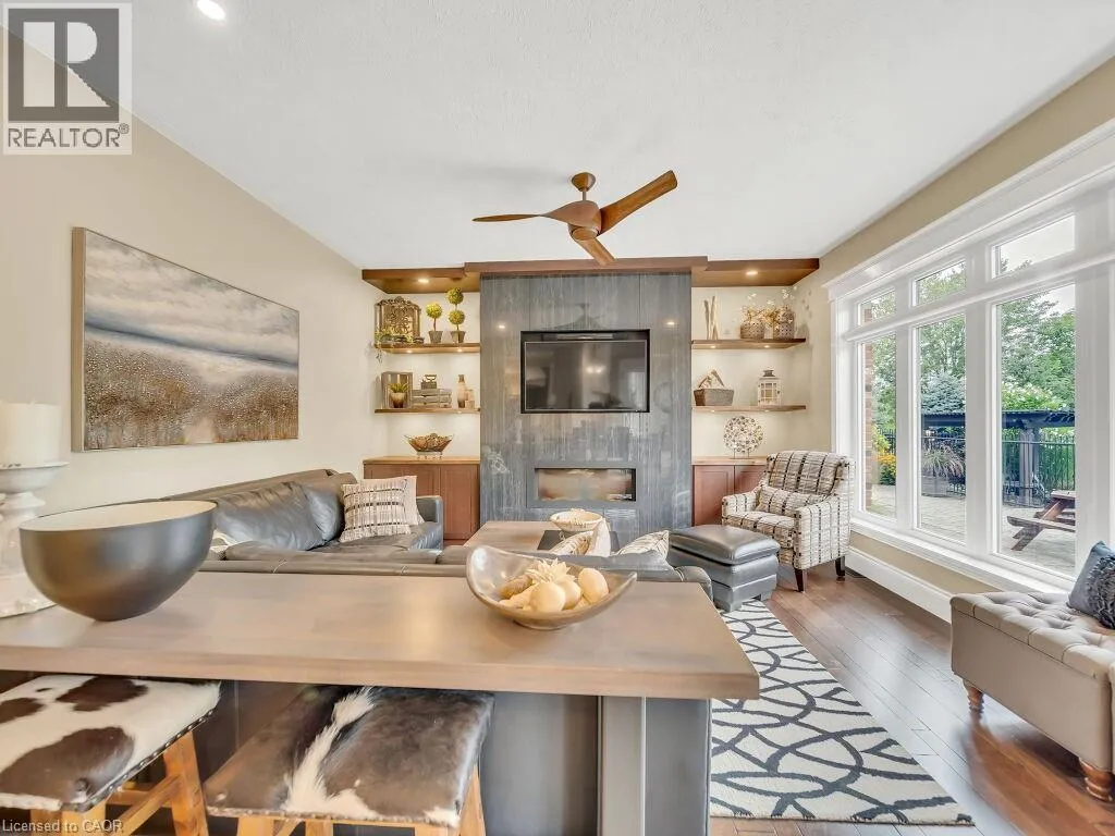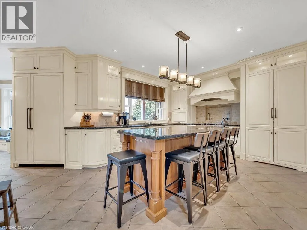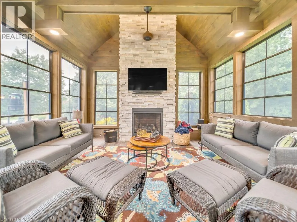 a charming gazebo & lush landscaping. Step into the 4-season sunroom, featuring heated floors, a kitchenette, a gas fireplace & an abundance of natural light, creating an inviting space year-round. The spacious barn offers extensive storage, a paddock & a large horse stable, all serviced by its own hydrometer & gas line. Outside, the property boasts 2 serene private ponds & a whimsical treehouse with its own power supply. Gather around the fire pit for unforgettable summer evenings filled with fun & laughter. The huge Garden with 7 zone Sprinkler system. The property has its own 240 ft deep well with new submersible pump in 2024 The estate also includes a garage with over 50 Driveway parking spaces & a dedicated section with changing stations for post-swim convenience. The fully upgraded home welcomes you with a grand porch & a spacious foyer. Inside, you’ll find 4 generous bedrooms & 3.5 luxurious bathrooms, with heated tiled floors & 9ft ceilings throughout. The chef’s kitchen is a culinary dream, featuring ample cabinets with pull-out drawers, SS Appliances & quartz countertops. The home offers separate living & family rooms, each adorned with elegant ceiling fans. The fully finished basement adds even more living space, with 2 additional bedrooms, a recreation room, & a 3pc bathroom. The garage is fully insulated, ensuring comfort and functionality year-round. Located conveniently close to Highway 401 and Highway 403, this property combines rural tranquility with easy access to modern amenities. Book your showing today and make this dream house your forever home. (id:62650)
