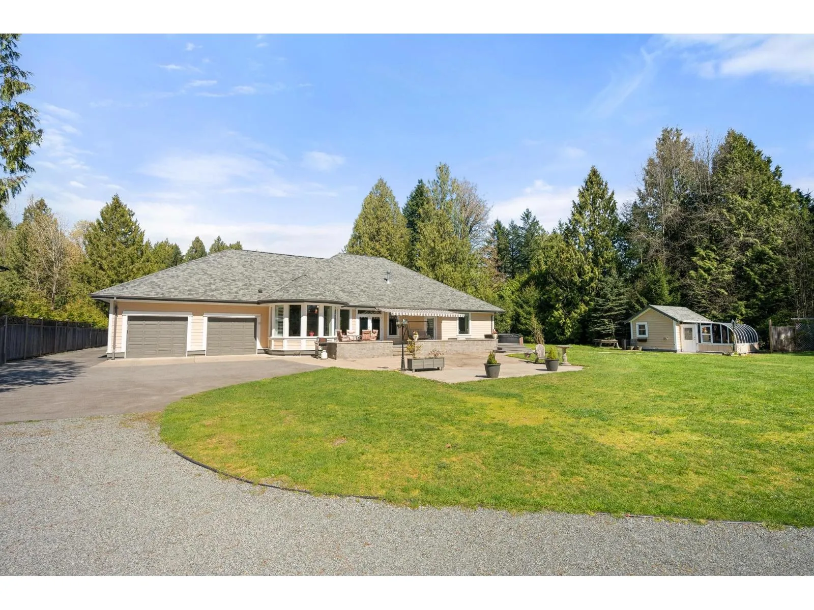 Beautiful 2.3 Acres on the coveted 6 Avenue, which is steps to Campbell Valley Park & Wineries. Custom built 3,434 sq ft Rancher with English garden. Detached Shop with self-contained 643 sq ft suite above. Shop can easily be converted to a small barn. Tasteful home offers 3 bdrms and a large bright office. Open concept family room with kitchen,