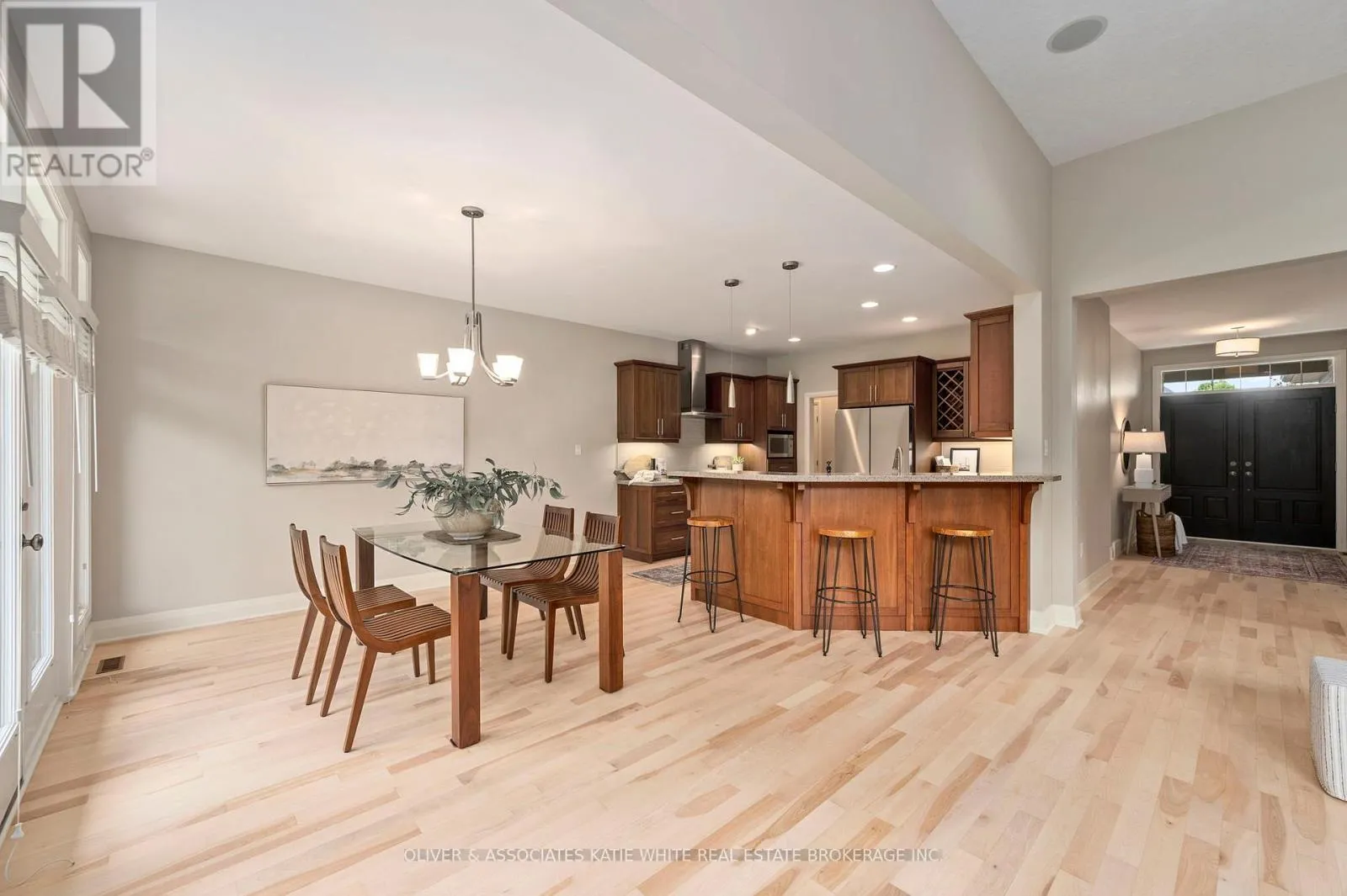 Better-than-new Crown-built Custom Home. Extremely well-cared for by the original owner. Optimally located within the Riverbend Community on a quiet street, and just a short walk to Kains Wood’s Trails and Riverbend Park. Flexible living in a rare Bungaloft-style home with optional one-floor living. MAIN FLOOR PRIMARY BEDROOM AND LAUNDRY ROOM. Bright and airy Foyer. Elegant hardwood flooring throughout. Spacious