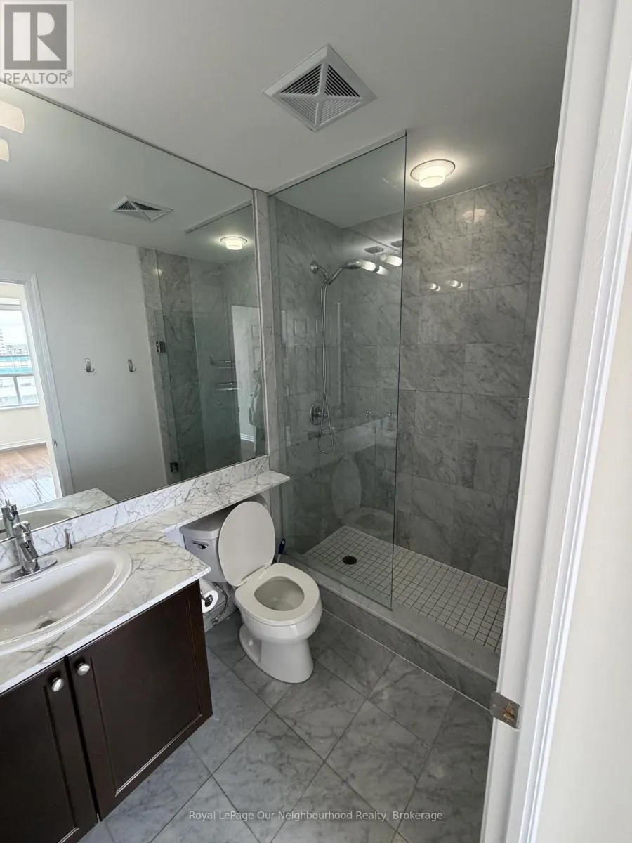 Bright spacious unit in the highly regarded Mosaic condos, freshly painted and professionally cleaned! One bedroom plus large den with door, could be used as a second bedroom. Hardwood flooring, granite kitchen counter tops, full size appliances, 2 full bathrooms. Unobstructed view from north-west facing balcony over park below. Parking and locker included! Very convenient location near subway, Metro grocery