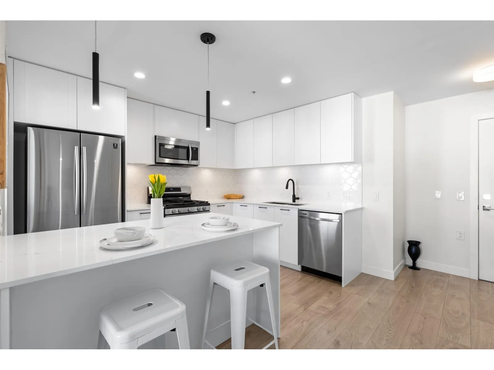 Welcome to the most popular location in Wiloughby, Latimer Village! This large one-bedroom corner unit on the sub-penthouse-level features a MASSIVE wrap around patio with mountain views. This spacious home features an open concept living/dining room, kitchen with FULL sized stainless appliances including a gas cooktop, an oversized kitchen island and primary bedroom with spacious closet. Quality laminate flooring that