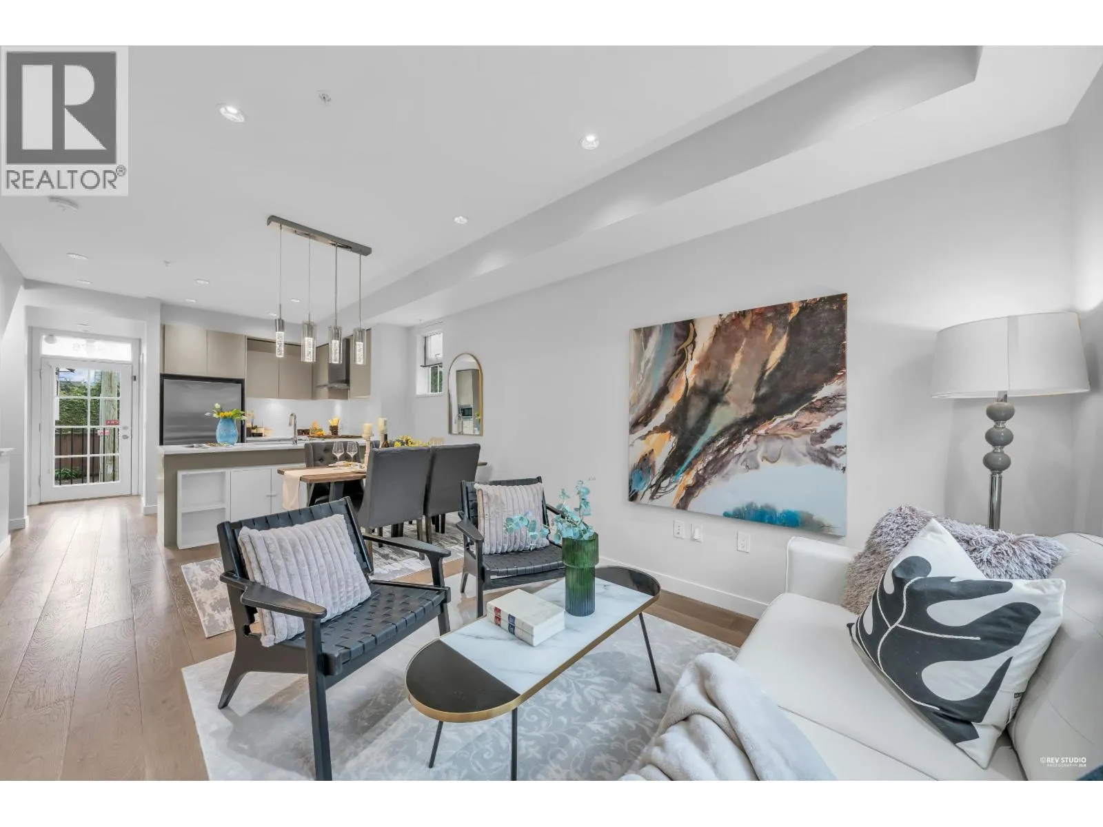 Osler Residences by Alabaster Homes presents a collection of 18 estate townhomes on a quiet, tree-lined street in Vancouver´s Westside. This modern corner unit, overlooking a gated courtyard, offers 1,650 square ft of thoughtfully designed living space across four levels. Featuring 3 bedrooms plus a den, the home showcases quality craftsmanship, ~9 ft ceilings on the main floor, a sleek