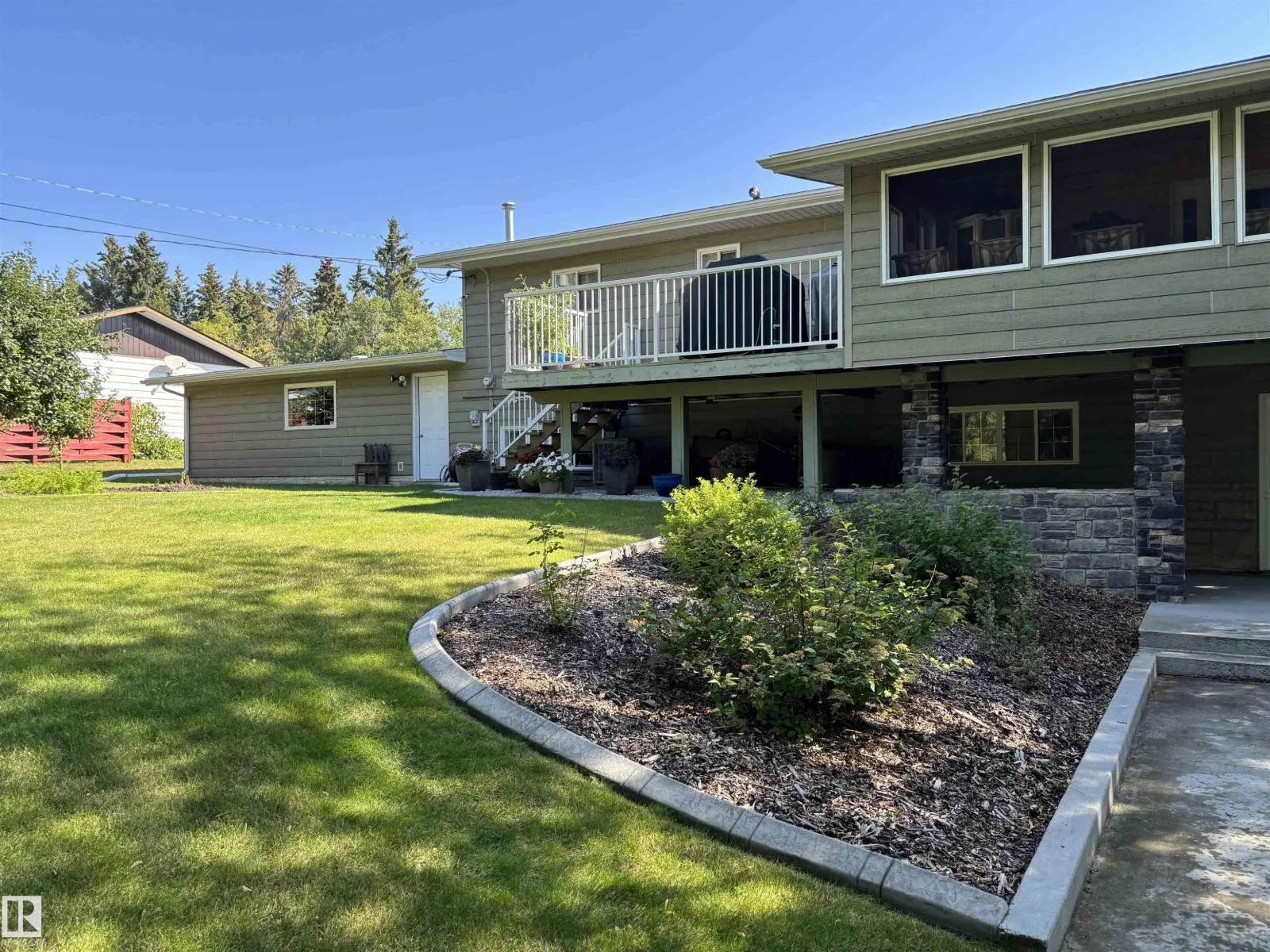 This exceptionally well-maintained bi-level home offers approximately 2600 sq ft of living space situated on 3 manicured lots. With a full main floor and exterior renovation in 2011, the home features 3 bedrooms (2 up, 1 down) and 3 full baths. The spacious primary bedroom boasts a walk-in closet and large ensuite w/ jetted tub. The kitchen has upgraded cabinets,