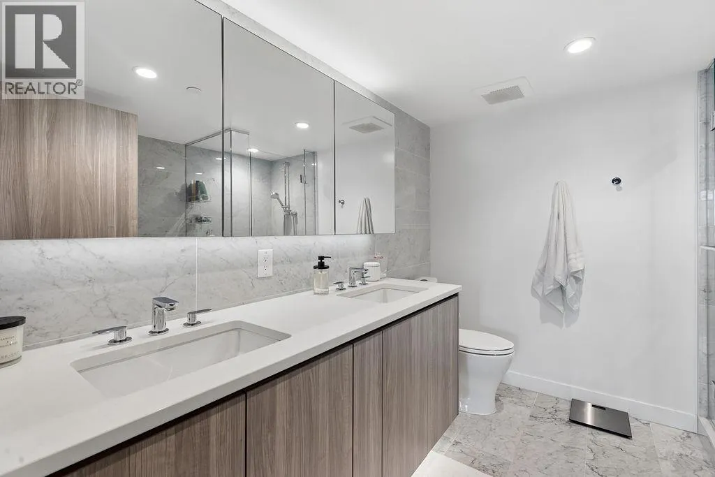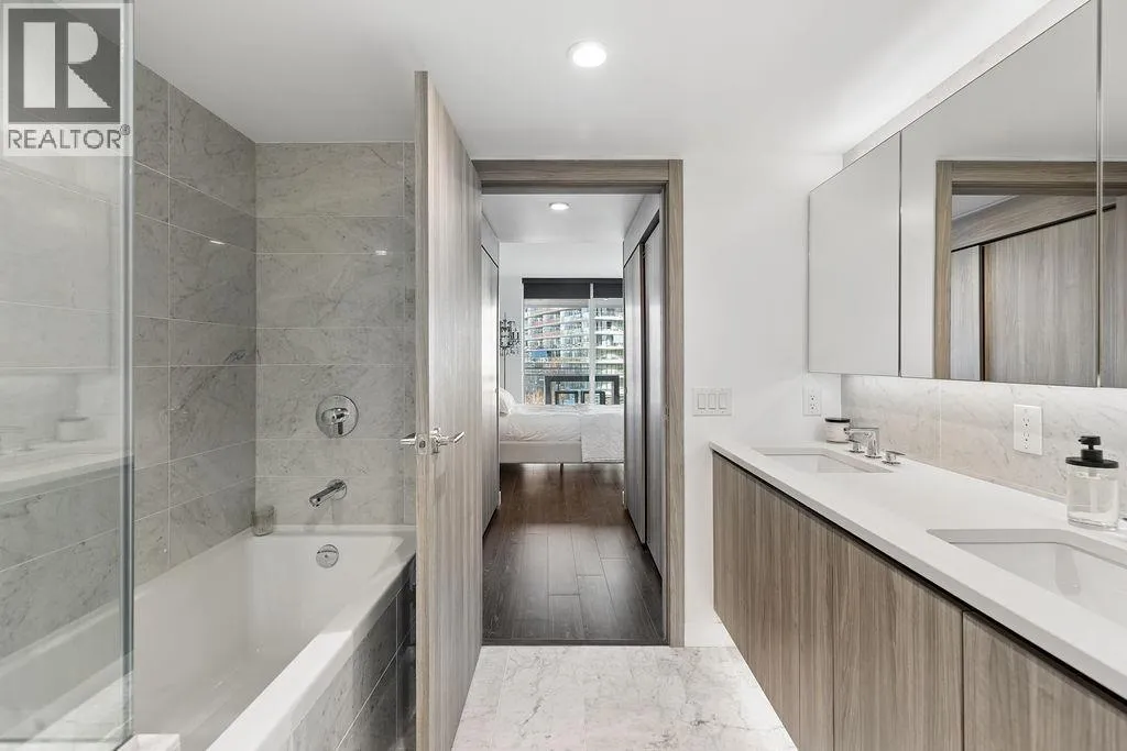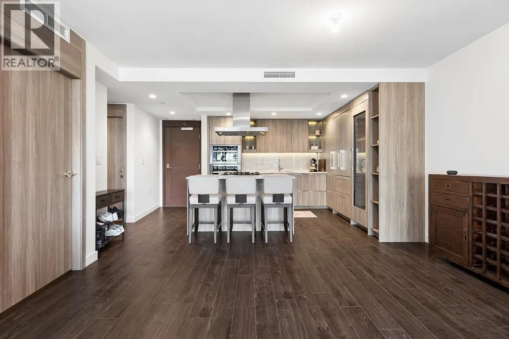 Prestigious Avenue One by Concord Pacific, ideally located in the heart of Olympic Village. This exceptional 2-bedroom plus den residence offers a thoughtfully designed open-concept layout with premium finishes throughout. The gourmet kitchen is equipped with high-end Miele appliances, seamlessly flowing into a bright living space that maximizes stunning views. Enjoy a fully equipped outdoor living area featuring porcelain tile