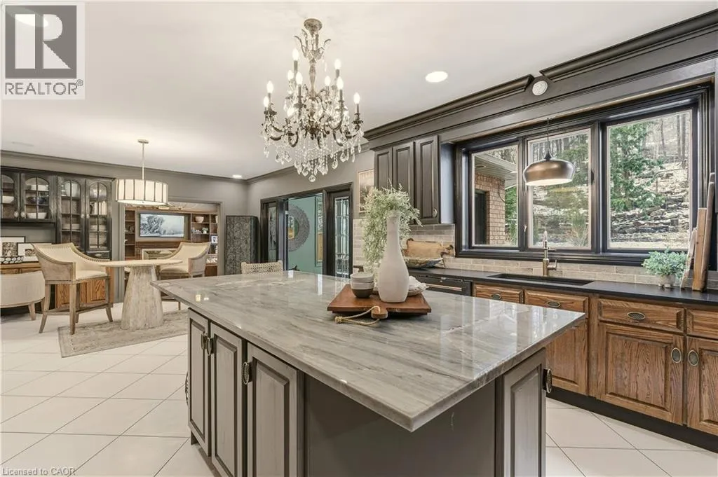 Welcome to an exceptional residence in the coveted Stoney Creek Plateau, where luxury, privacy, and breathtaking natural surroundings come together seamlessly. Offering more than 6,500 square feet of finished living space, this impressive home backs directly onto the Niagara Escarpment, showcasing sweeping views of Lake Ontario and the Toronto skyline. The grand main level welcomes you with an elegant foyer