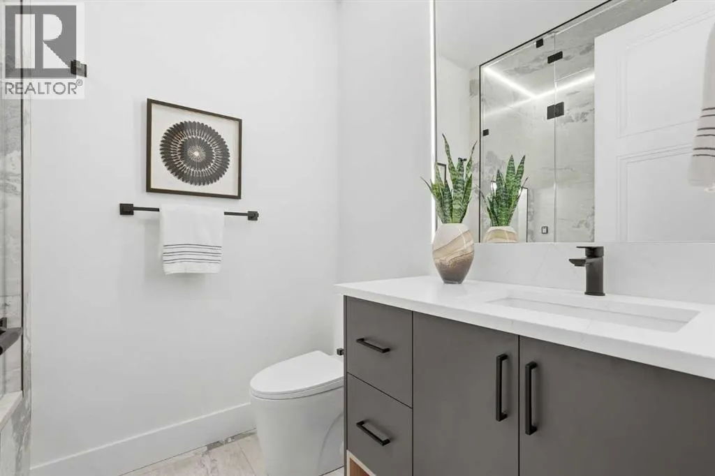 Stunning new home with full Smart Home capability, built by Libra Homes situated on a 27.6’x120’ lot in the heart of North Glenmore Park, offering 3+1 bedrooms & over 3000 sq ft of luxurious living space. The open & airy main level presents wide plank hardwood floors, lofty ceilings & stylish light fixtures, showcasing a spacious living room with built-ins