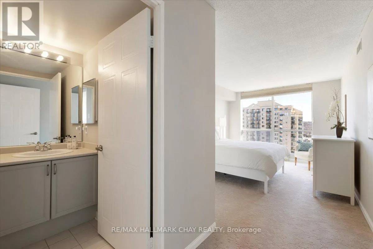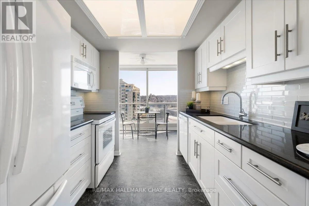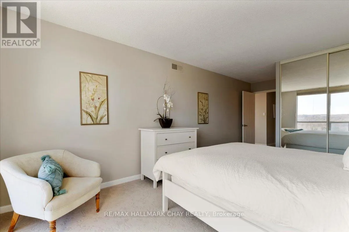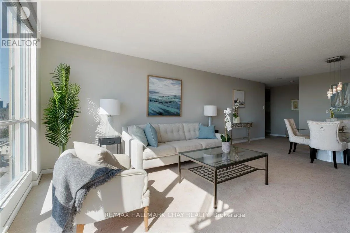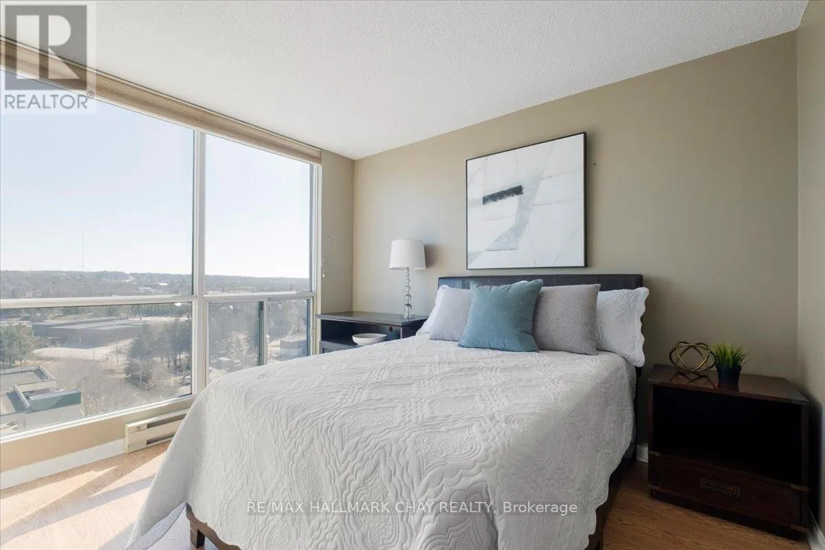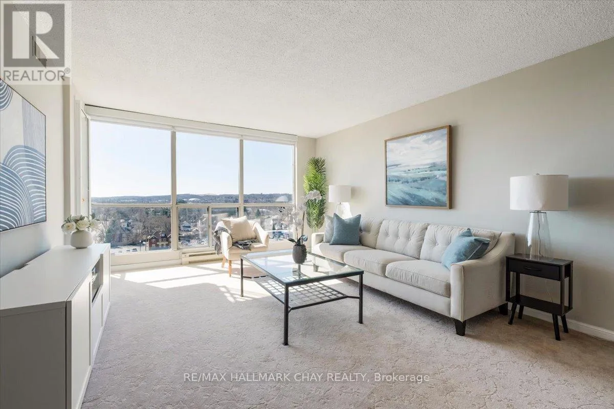 Lovely 2 bedroom, 2 Bath, 1,123 square foot suite at Marina Bay. Beautiful south facing view of Kempenfelt Bay. Spacious living room with a large dining area, spacious enough for a full dining set. The upgraded kitchen provides gorgeous counters, under-mount lighting, glass tile backsplash, ceramic floors, double sinks and loads of cupboards. The solarium is a beautiful area to