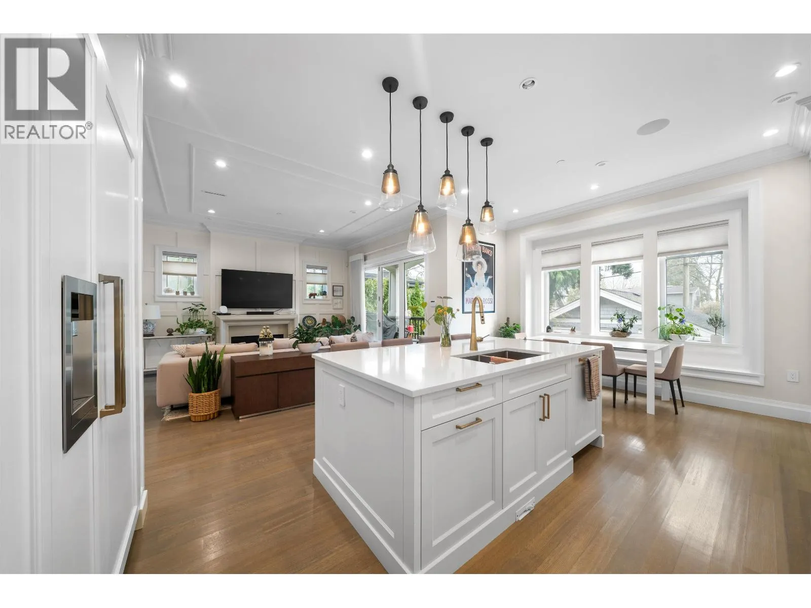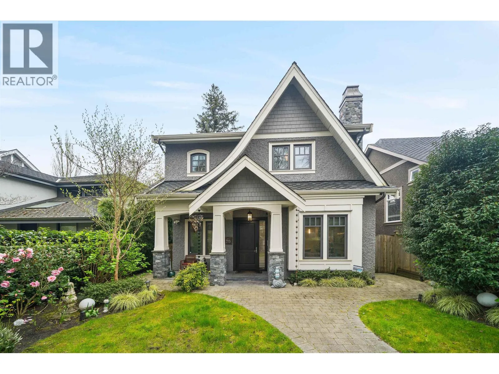 Elegant custom-built Craftsman-inspired residence in the highly coveted Dunbar neighbourhood. Showcasing timeless architecture with refined detailing, this 3-level home features a Control4 smart system, premium Miele appliance package, central A/C, radiant in-floor heating, and engineered hardwood flooring. The upper level offers four spacious bedrooms, each with its own ensuite, while the lower level is designed for entertaining with a wet