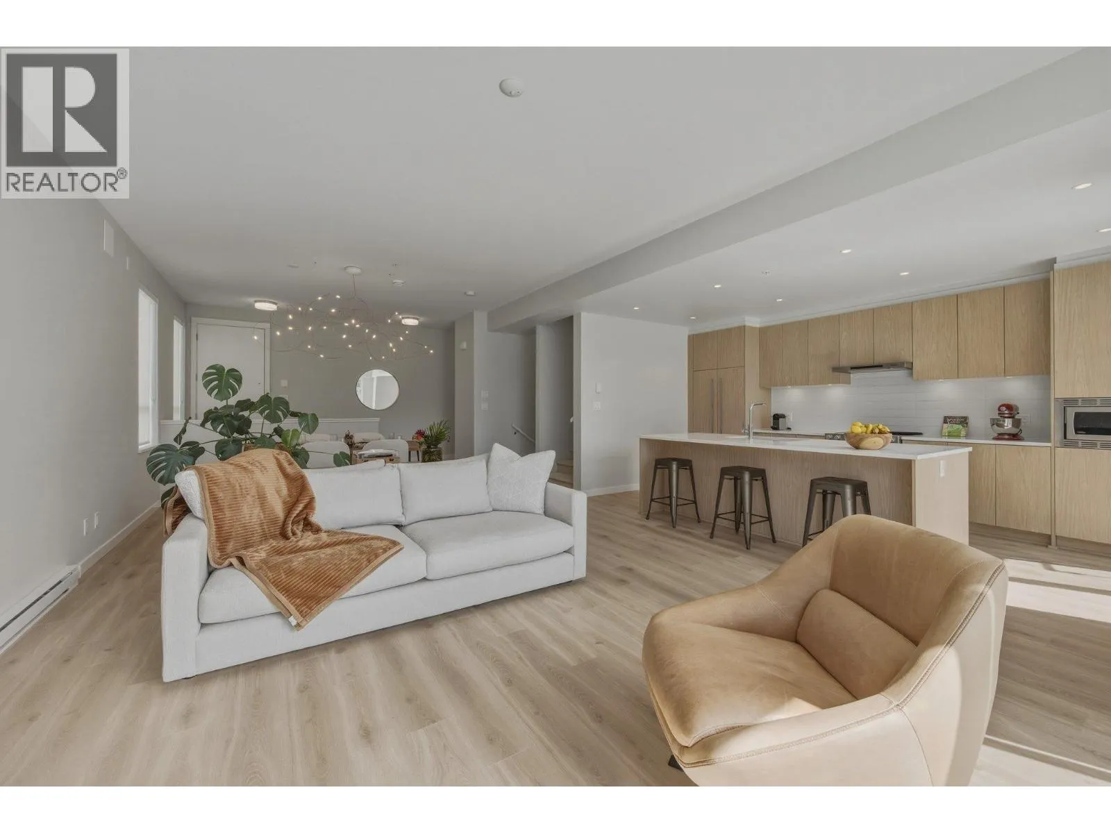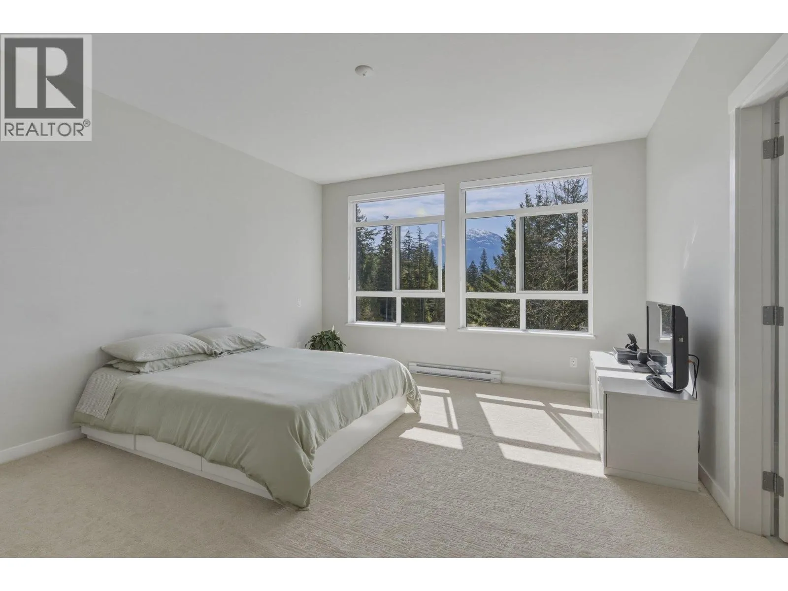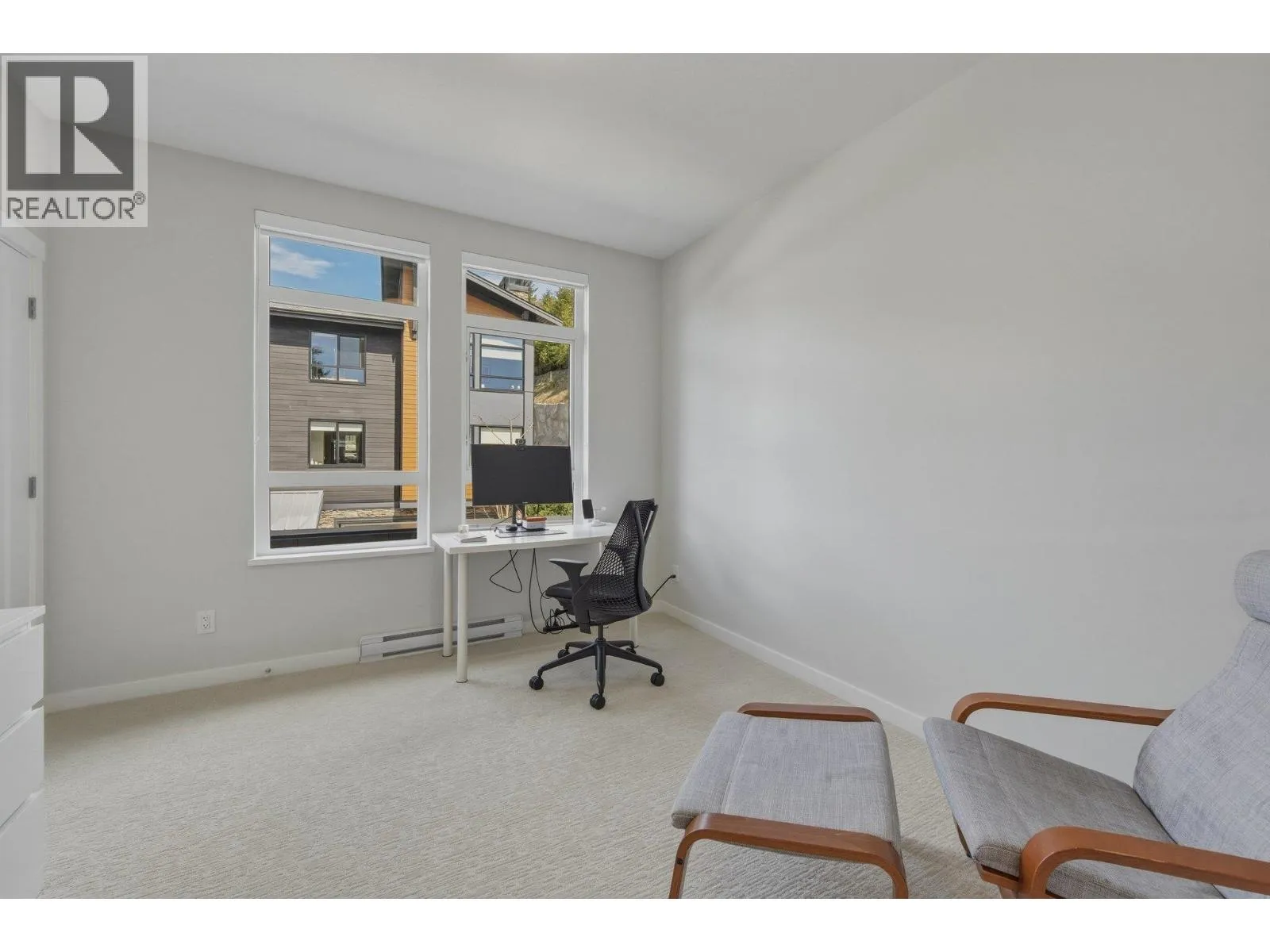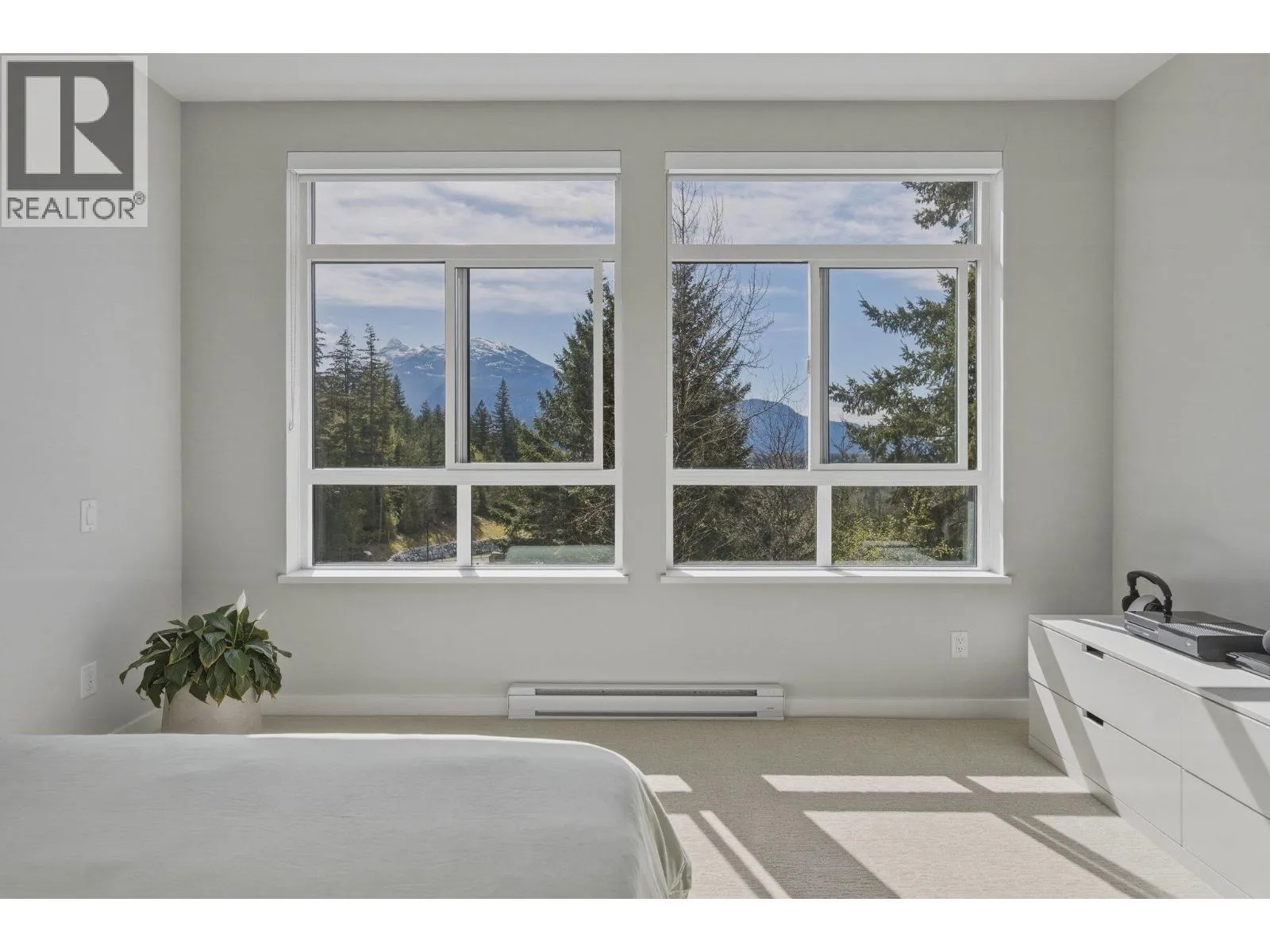 STUNNING half duplex at modern elevated ‘Highline’ by Polygon w/mountain views, privacy & treed outlook! Enjoy abundant natural light, 3 exposures, 9.5 ft ceilings, over height windows & doors, a true open plan great room w/sense of space. Deluxe kitchen + living w/fireplace both open out to south deck! The width of the home provides a generous layout on all