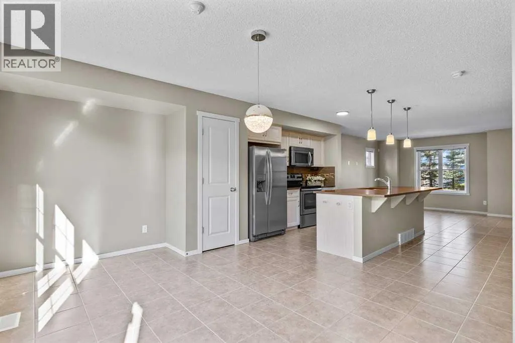 WELCOME TO THIS BEAUTIFUL END-UNIT TOWNHOUSE WITH DOUBLE GARAGE OFFERING OVER 2000 SQ.FT OF DEVELOPED LIVING SPACE in the DESIRABLE LAKE COMMUNITY OF MAHOGANY. This SPACIOUS 3 BEDROOM, 2.5 BATHROOM HOME is perfect for families or those seeking extra room to grow. The main floor features a BRIGHT OPEN-CONCEPT LAYOUT with durable TILE FLOORING throughout, creating a seamless and modern