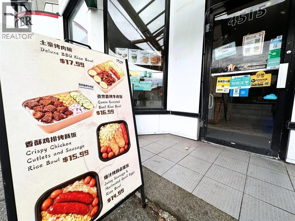 Showing by appointment only. Please do not disturb staff. Turnkey food & beverage business for sale in a high-exposure corner location with excellent street frontage. Conveniently located beside a bus stop with direct routes to UBC, offering strong exposure to nearby residents, office workers, students, and steady pedestrian traffic. Approx. 859 sq.ft. of well-designed space, fully equipped with rear prep