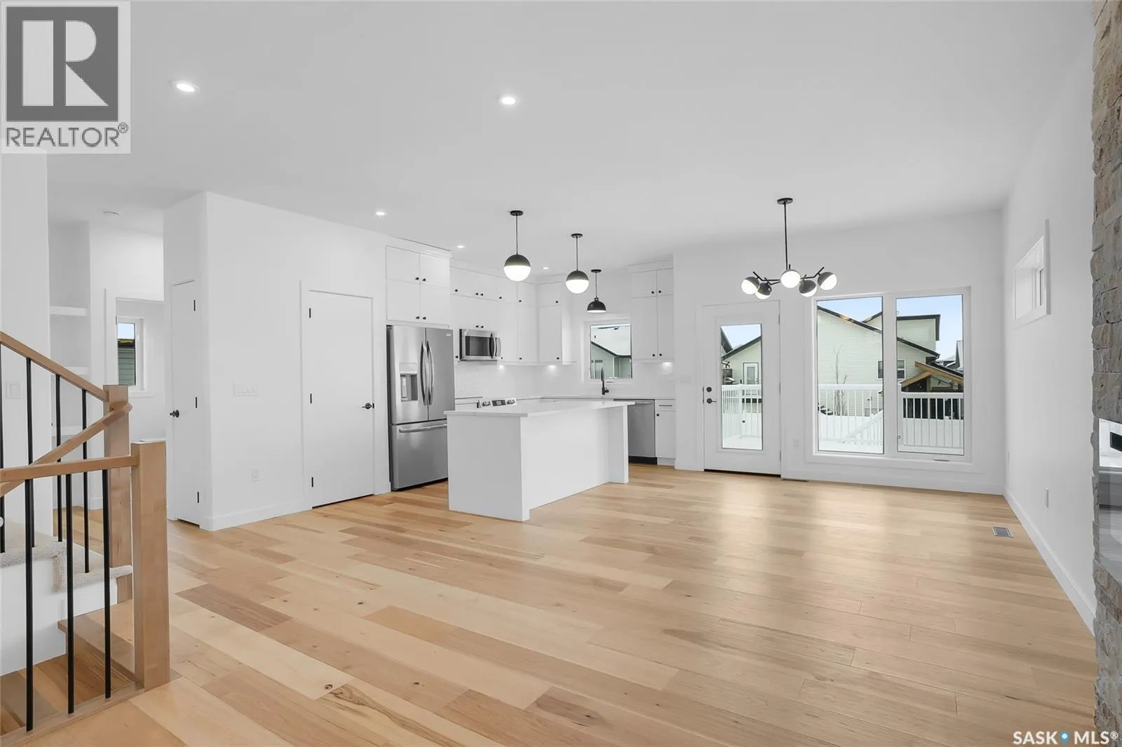 Welcome to 801 Ballesteros Crescent, an exceptional Pawluk Homes residence in Warman’s distinguished Legends community. Every detail of this refined modified bi-level speaks to quality and thoughtful design, offering a level of sophistication with comfort. The grand foyer introduces an open staircase with custom maple railing, high ceilings, and rich hardwood flooring that set an elegant tone throughout. The main