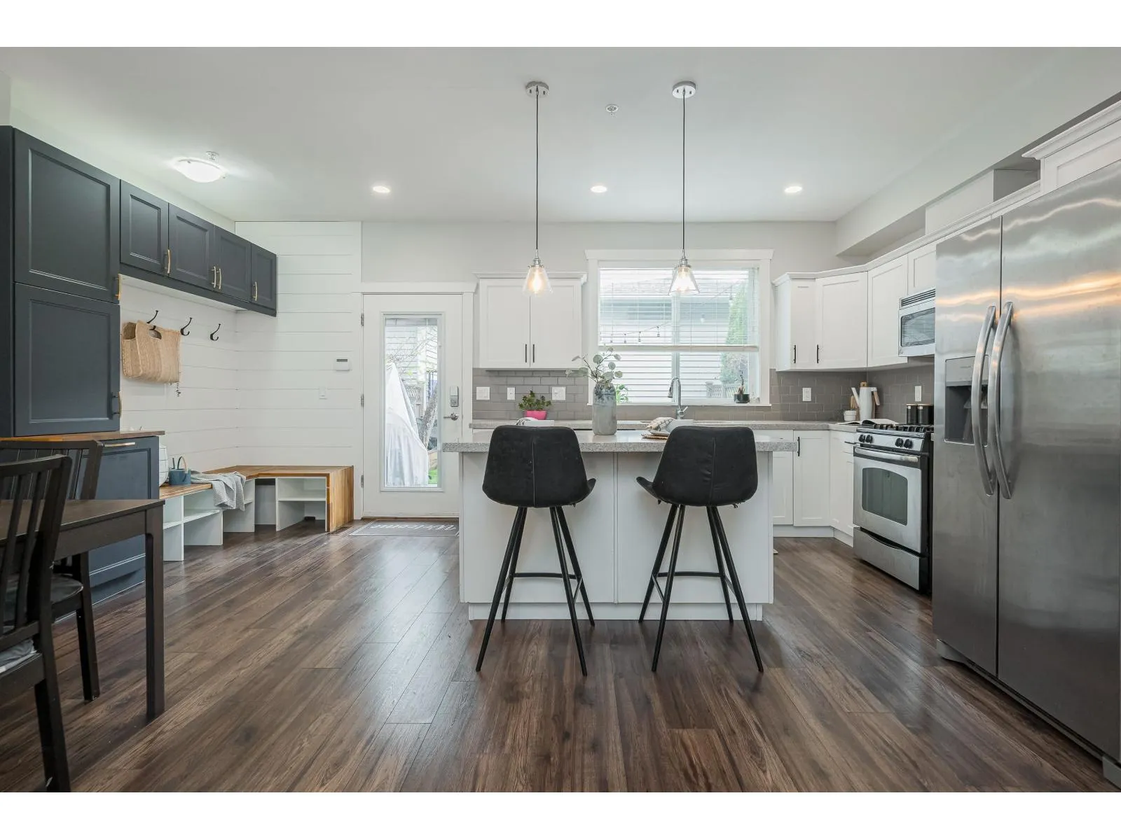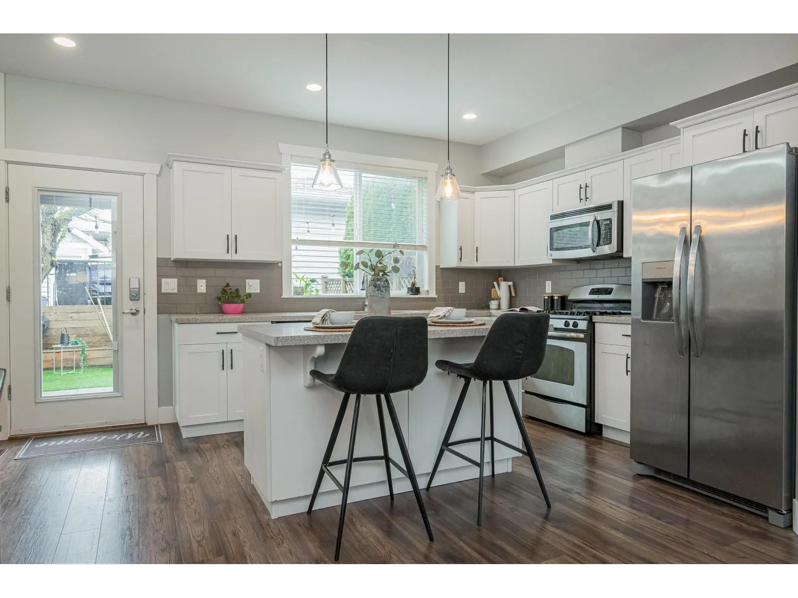 Beautifully maintained 4 bed, 3.5 bath + den rowhome in sought-after Kingsbury at Yorkson with NO STRATA. Functional open-concept main floor, 3 well-sized bedrooms up, and a versatile basement with rec space, den and wet bar, ideal for entertaining or extended family. Well cared for with key updates including furnace (5 yrs) and A/C (7 yrs). Enjoy a low-maintenance, south-facing