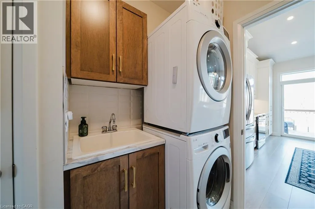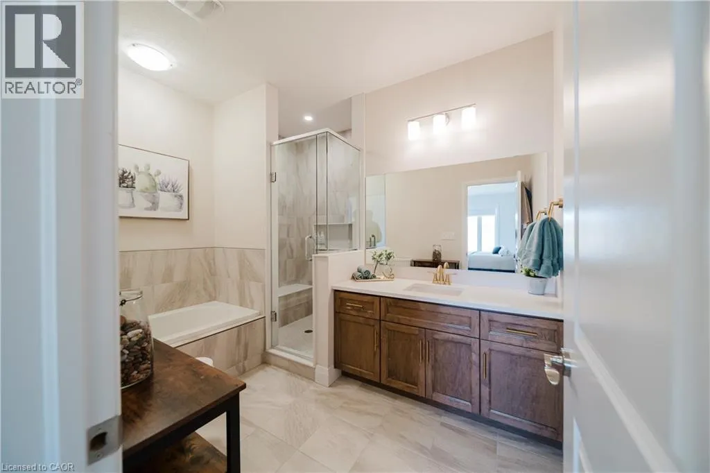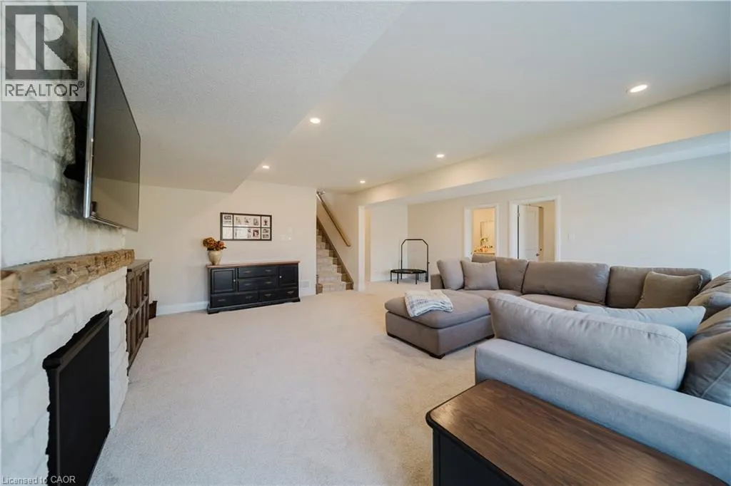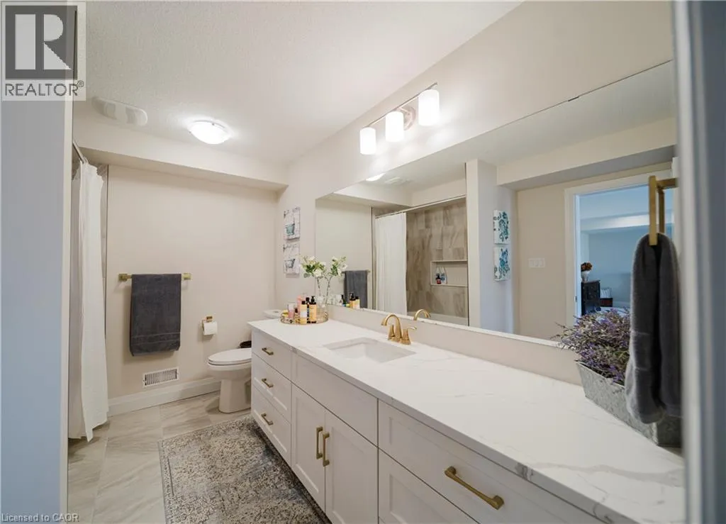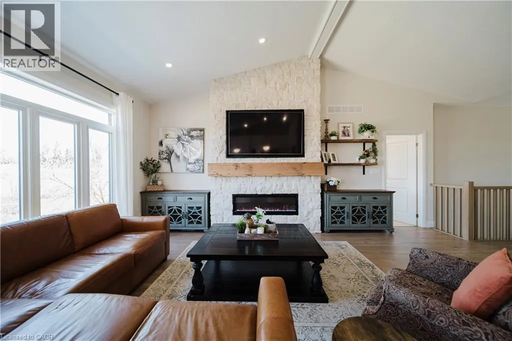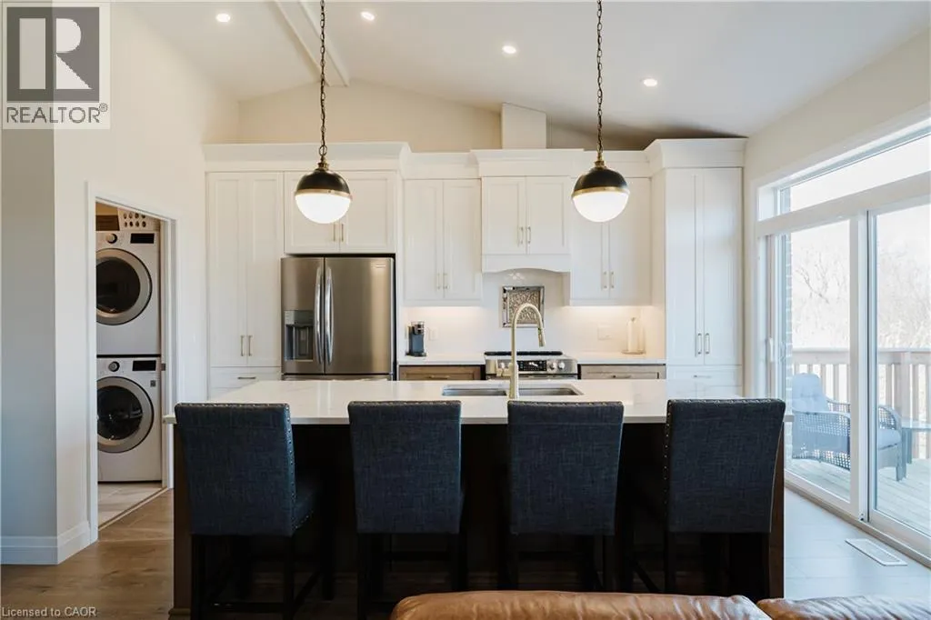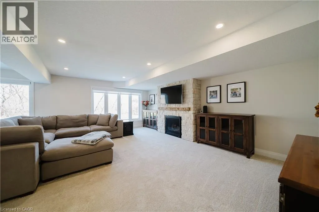 Welcome to Timberlane—an exclusive Baden community—where this exceptional end-unit bungalow townhome stands out with designer-inspired finishes and a premium greenspace setting that offers added privacy. The main level showcases a modern open-concept layout, anchored by a stunning custom stone fireplace that creates a warm and inviting focal point. Oversized windows flood the space with natural light, while the thoughtfully designed
