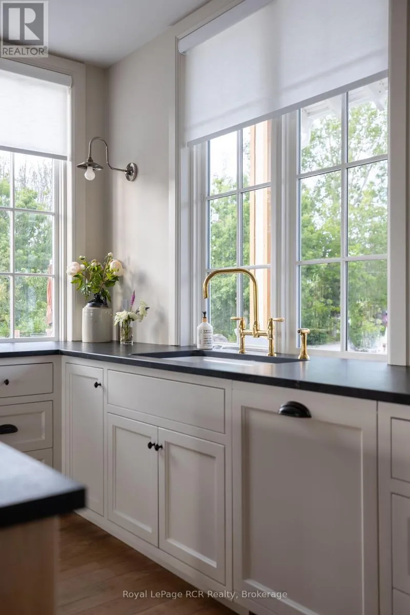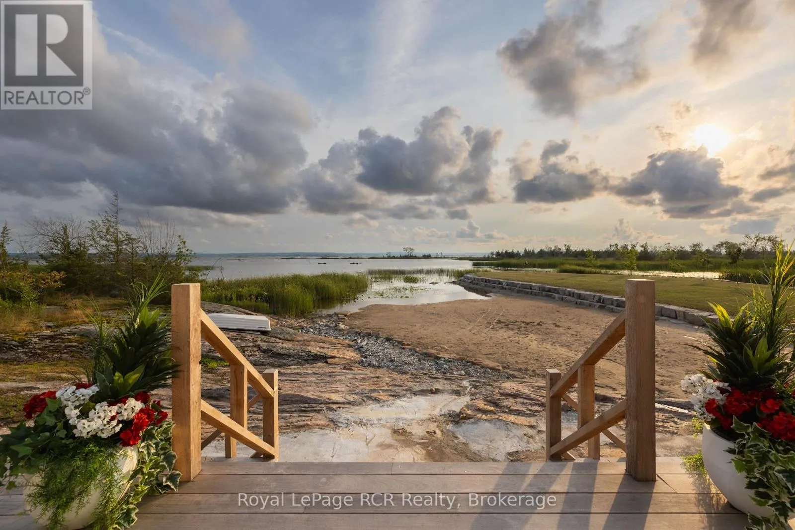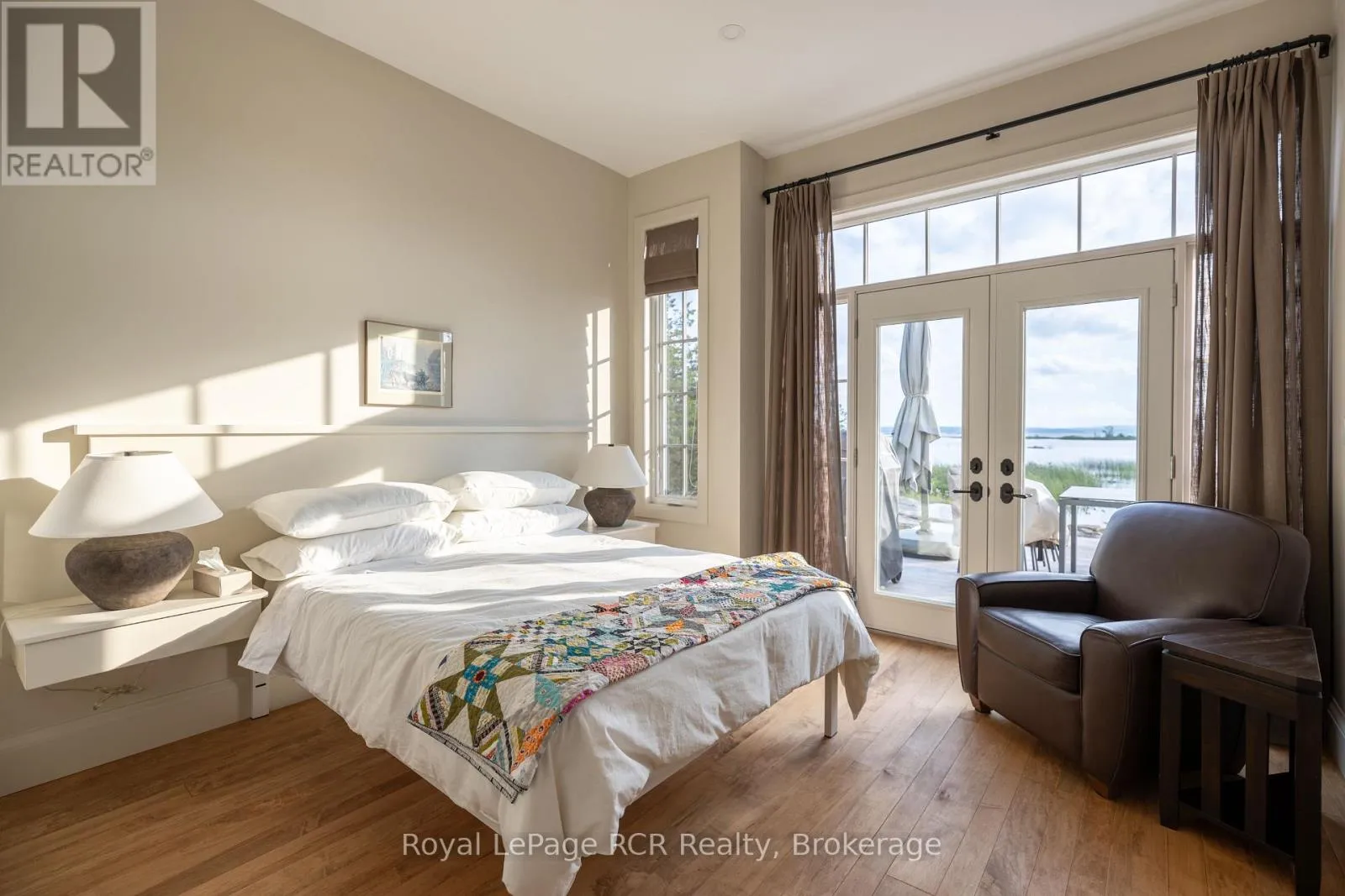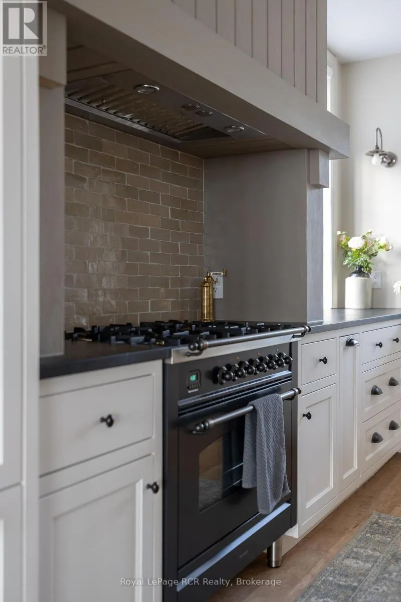 Custom Muskoka Beach House with sand beach waterfront, blending timeless charm with modern comfort. Thoughtfully designed and built in 2023 with both attached and detached garages, this open-concept home offers expansive windows and vaulted ceilings which flood the principal rooms with natural light while framing beautiful lake views. Warm wood accents, custom millwork, and a cozy fireplace create an inviting