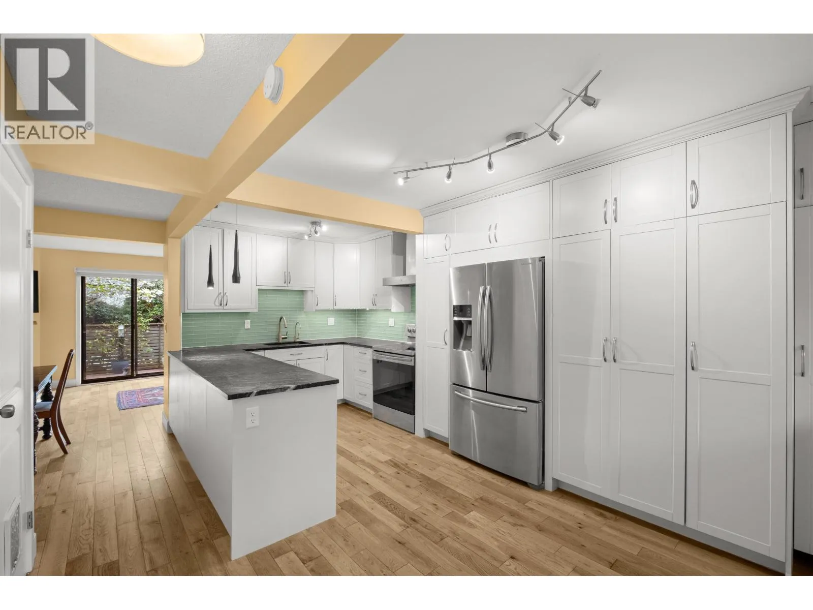 Mountain Estates offers exceptional value in Lynn Valley. This renovated 4-bed, 2-bath family townhome spans nearly 1,800 sf over 3 well-designed levels. The main floor features a spacious kitchen, generous living & dining area with a gas fireplace & direct access to a fully fenced south-facing patio that fills the home with natural light & creates the perfect space for