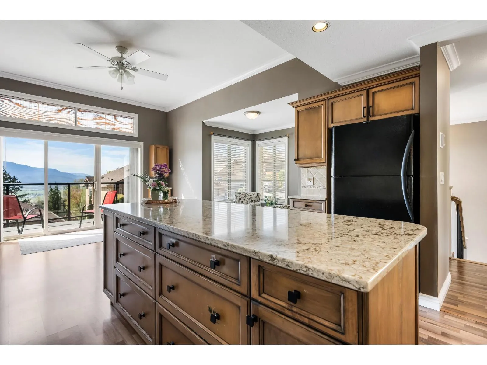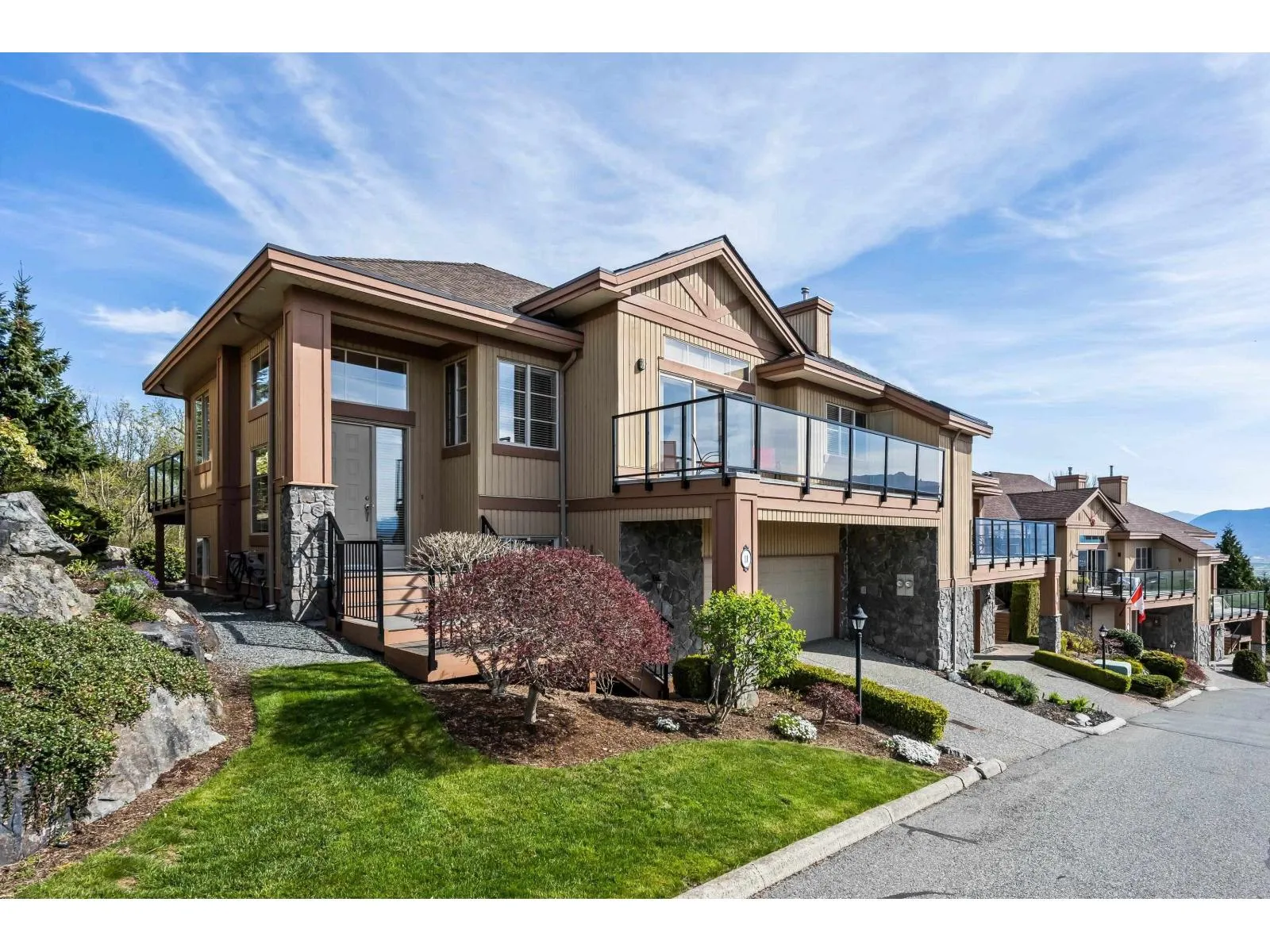 Welcome to Majestic Ridge – a prestigious gated community at the top of Eagle Mountain in East Abbotsford! This executive 2-storey townhouse offers nearly 3,000 sqft of beautifully maintained living space featuring: . 3 Beds | 3 Baths, Primary on main with WIC + luxurious 5pc ensuite, Stunning Mount Baker views from front deck, Private rear backing greenbelt with Mt.