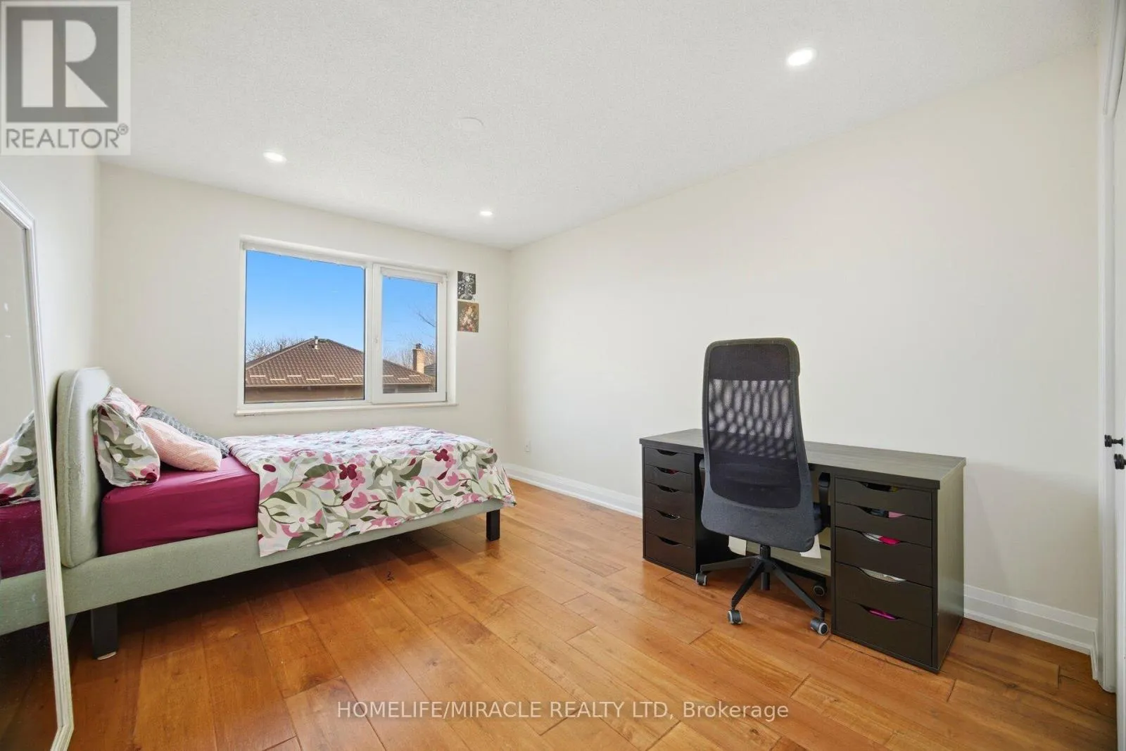 Nestled on a quiet, tree-lined street, this beautifully renovated custom-built solid brick home sits on a rare pie-shaped lot, offering exceptional privacy, curb appeal, and charm in a highly desirable and family-friendly neighborhood. Featuring premium German-engineered inward-opening windows (2010) for enhanced energy efficiency and durability, the home was extensively renovated in 2023 with new hardwood flooring, a sleek stainless steel