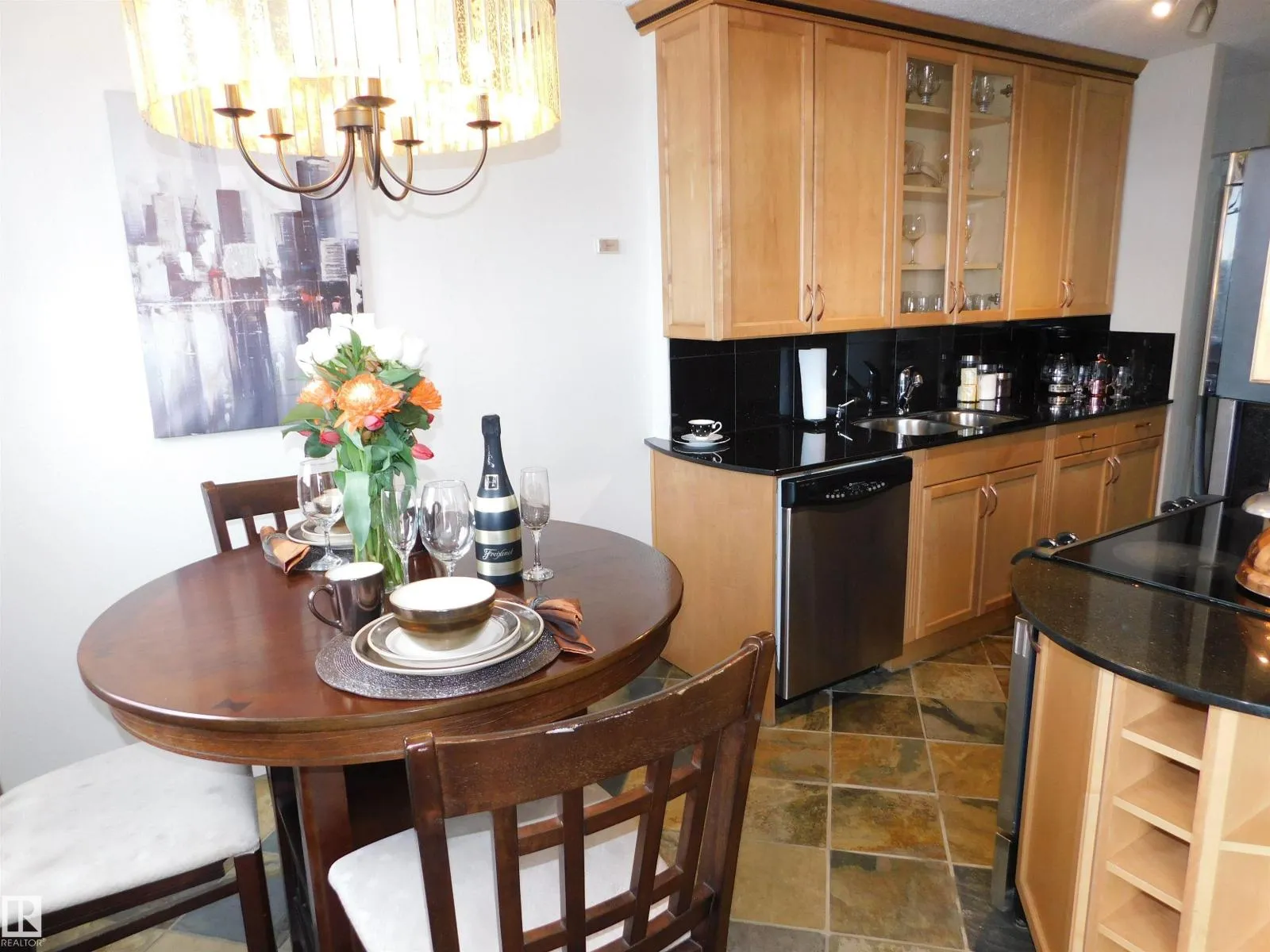 Spectacular Sunrise downtown views you can enjoy every day for this bargain price. Dazzling renovated suite features slate flooring throughout, freshly painted, upgraded trim, glass doors & stunning workmanship throughout includes mouldings & baseboards, custom kitchen with black galaxy granite countertops & back splash! Condo fees $523.37 includes everything, all utilities & free laundry on every second floor. Underground parking