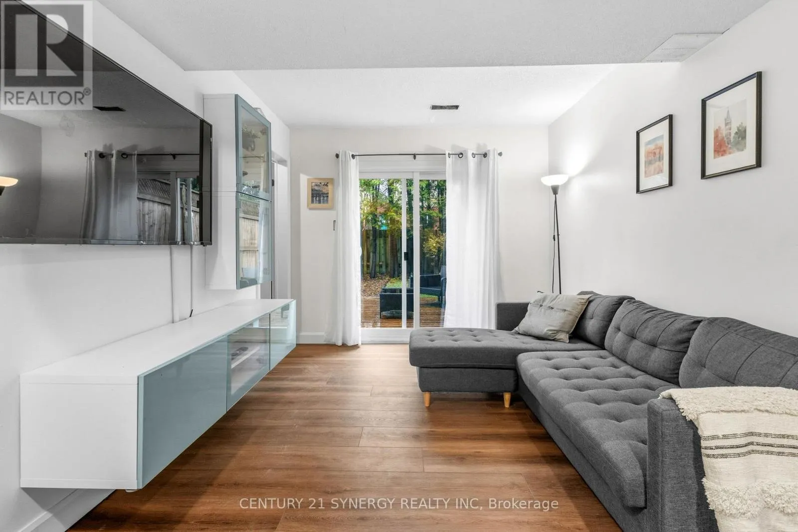 Beautifully updated unit on a quiet cul-de-sac! Featuring a stylish mix of hardwood, ceramic, and carpet flooring, this home offers a bright, spacious layout. The large eat-in kitchen boasts stainless steel appliances and opens to a scenic balcony with stairs leading to a private, fenced yard, perfect for outdoor enjoyment. The elegant living room is highlighted by a cozy wood-burning