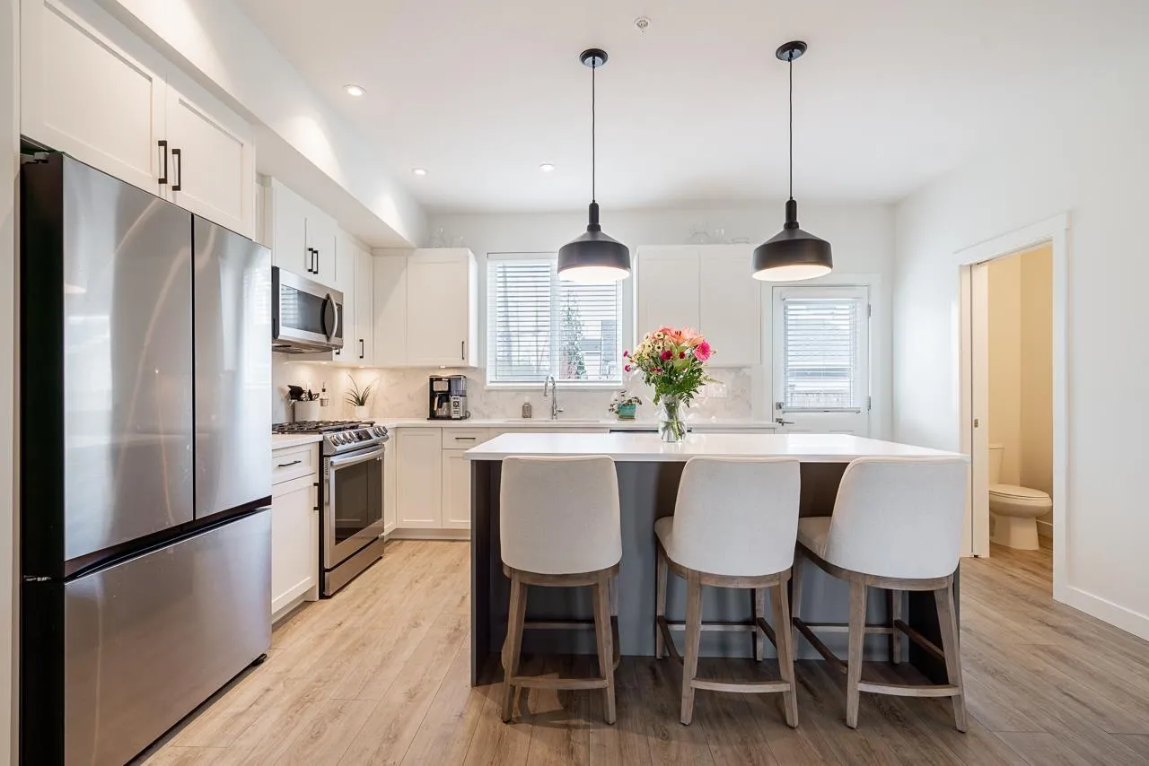 No Strata Fees! Discover modern living in this stunning 4-bed, 4-bath rowhome. Enjoy the privacy of freehold ownership in a vibrant neighborhood without the strata hassle. The bright, open-concept main floor features modern finishes, a spacious living room, dining area, and kitchen. Upstairs holds 3 bedrooms, while the fully finished basement includes a large rec room, a 4th bedroom,