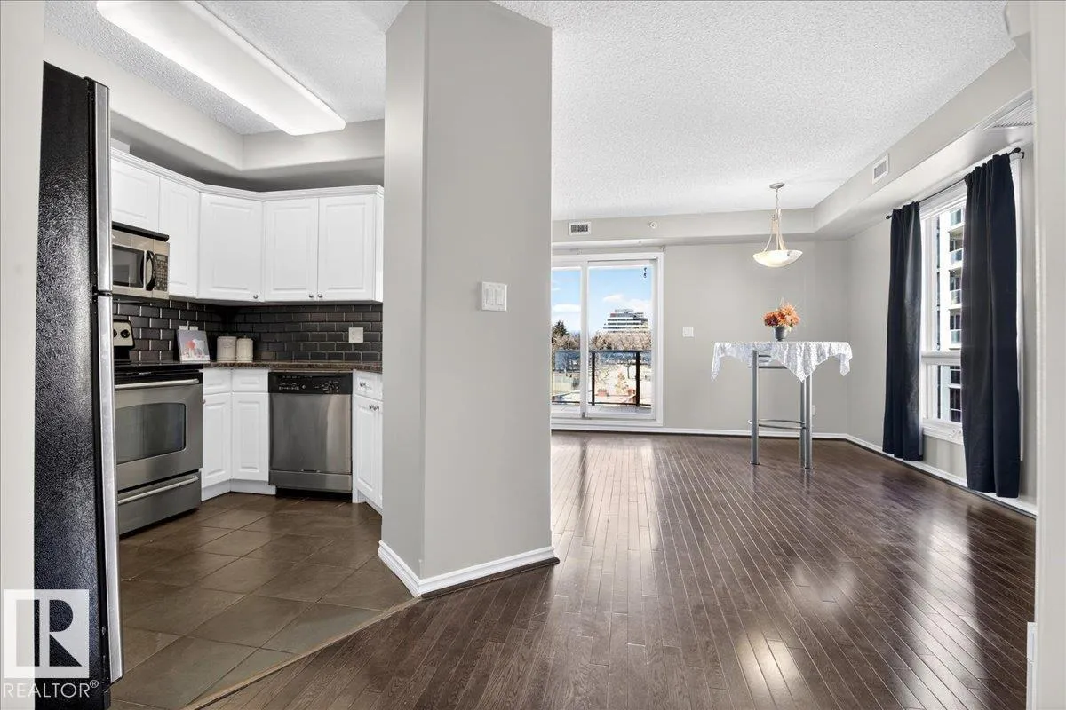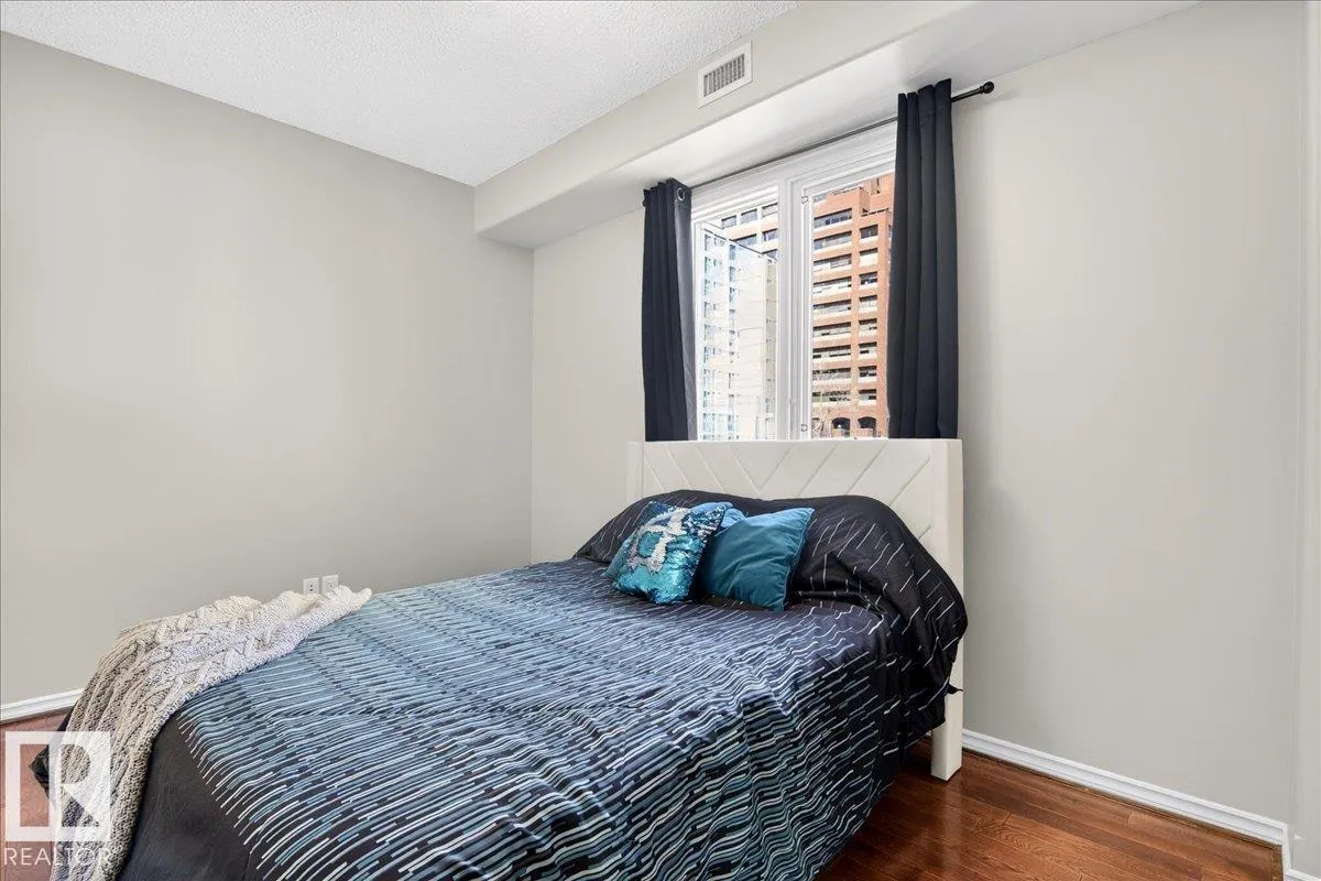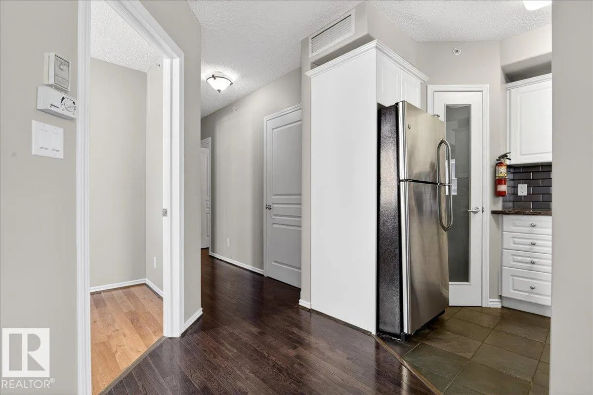 Welcome to Rossdale living in this well-appointed 2-bedroom, 1-bathroom condo in a solid concrete building. Enjoy an unbeatable location with a private balcony overlooking the Legislature Building and downtown views. The open-concept layout features granite countertops throughout, an undermount silgranite sink, stainless steel appliances, and a corner pantry. The unit is completely carpet-free with hardwood flooring, offering a clean, modern