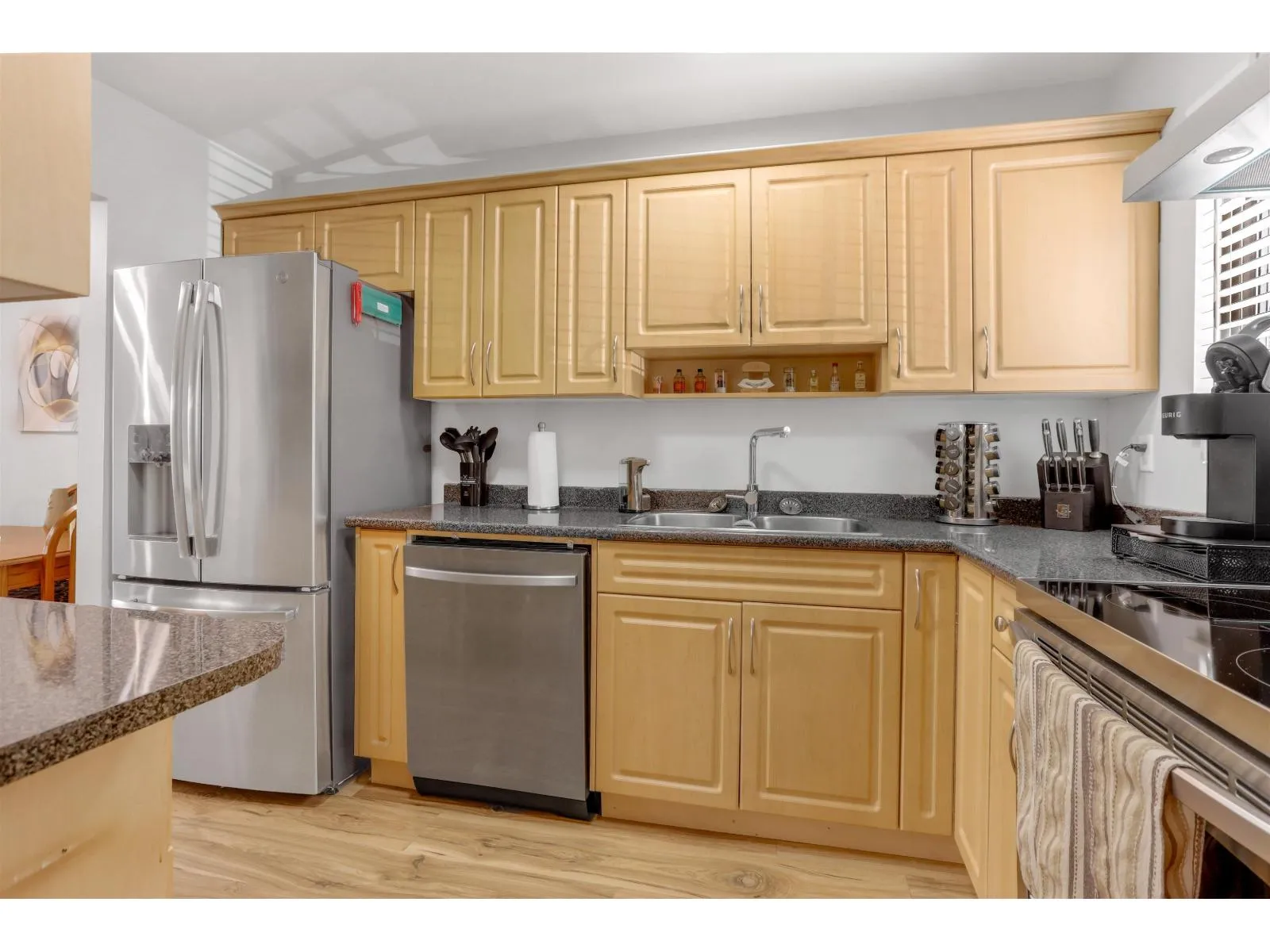 Fully updated 2-bed home in a fantastic Surrey location with Low Strata! Enjoy engineered hardwoods floors throughout, a brand-new kitchen, new appliances, and a stunning modern bathroom. The spacious living area opens onto a large private deck backing onto a lush greenbelt – perfect for relaxing of entertaining. Incredible privacy and views! Located in a quiet, family-friendly neighborhood with access