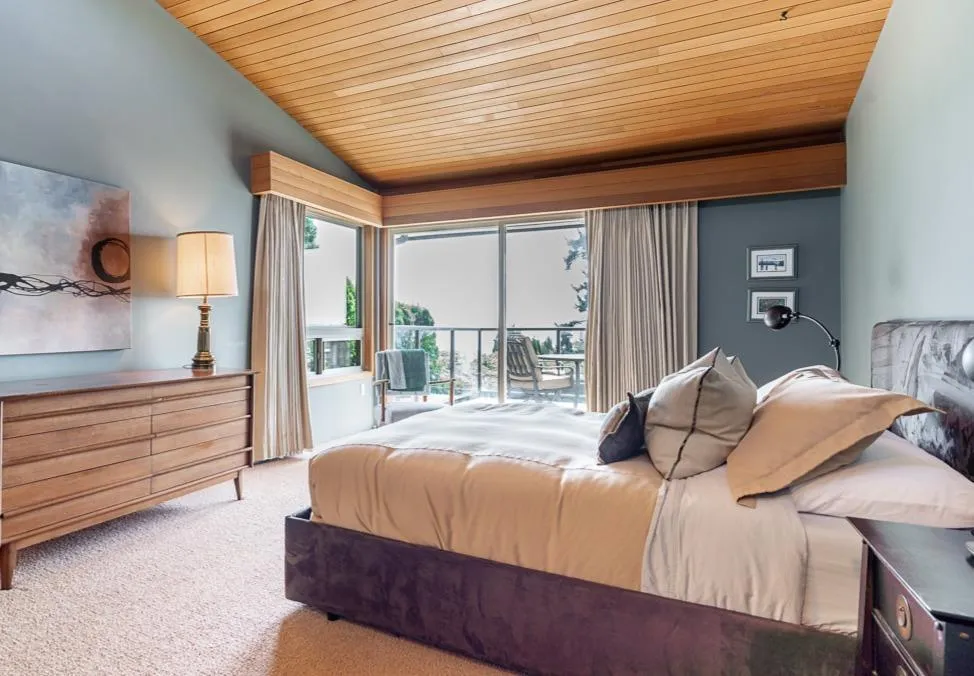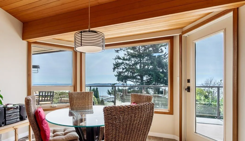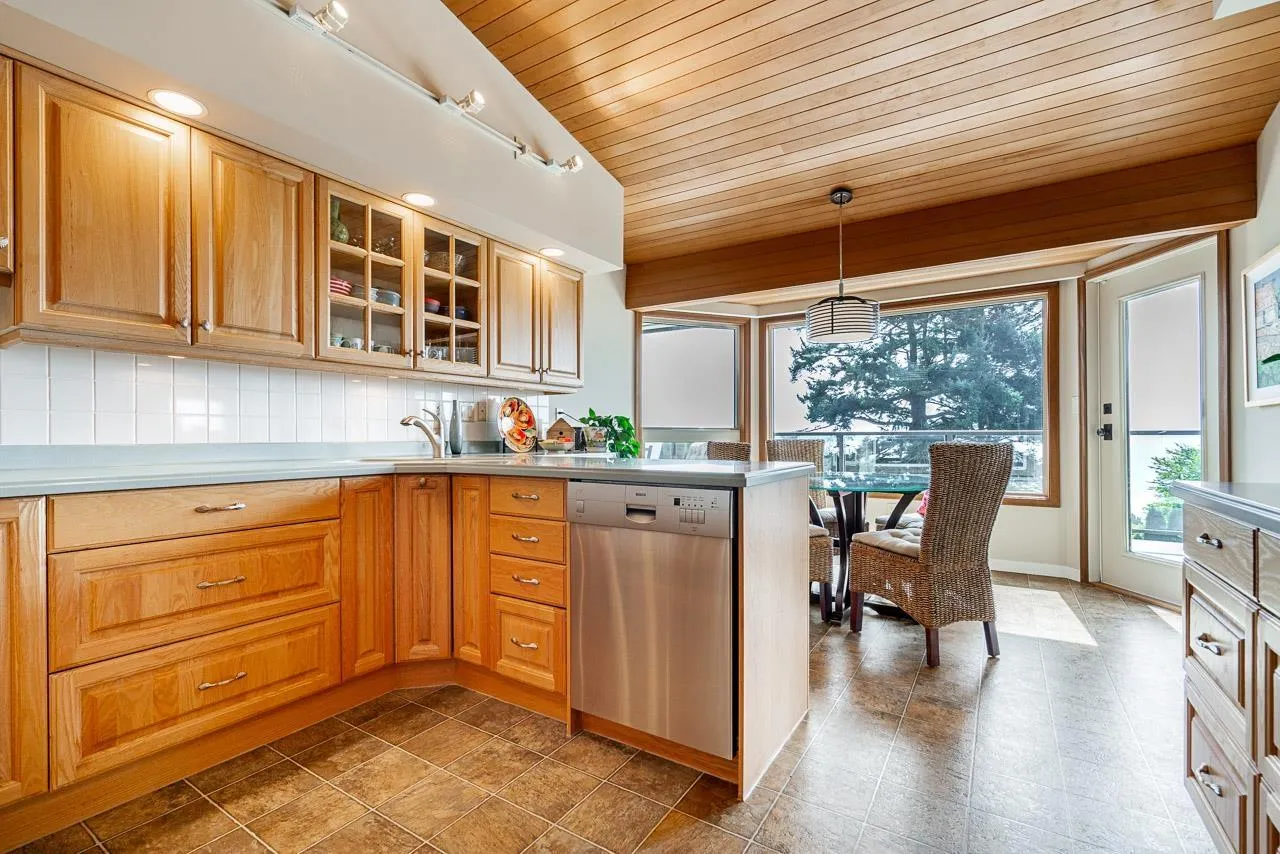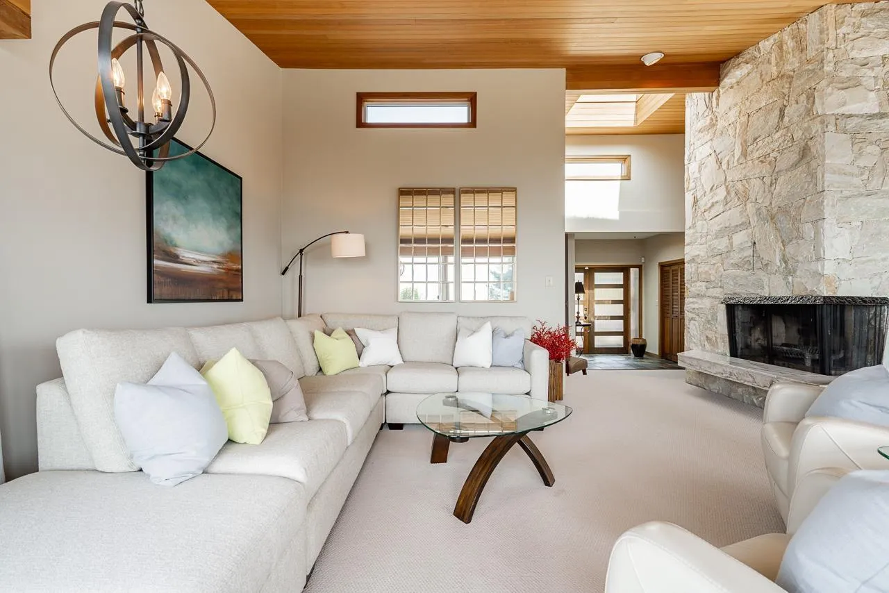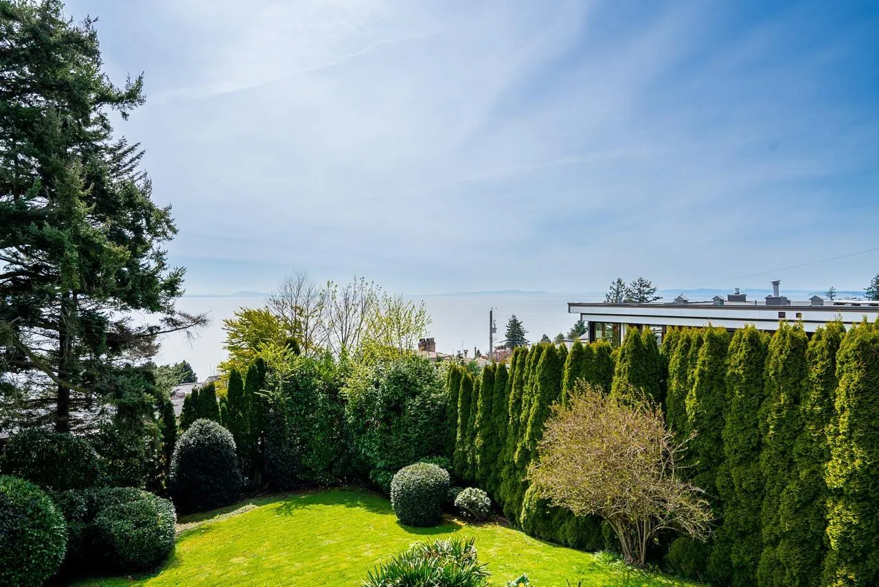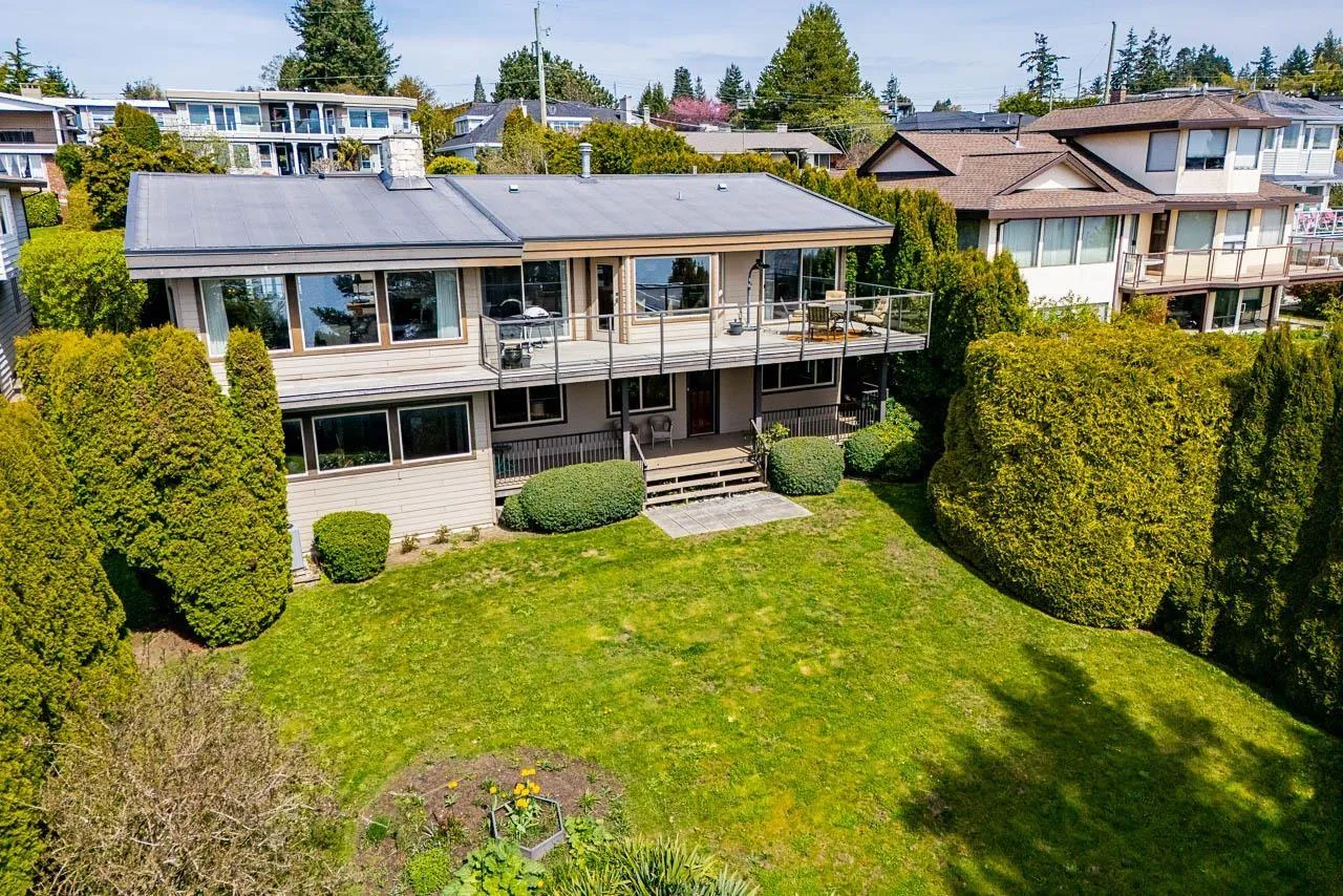 Panoramic, ocean views on rare, 14,000 sq ft lot in White Rock. This home has unique architecture throughout with original wood, vaulted ceilings. Completely renovated in 2010 including Hardy Board exterior siding, spa-like bathrooms, new roof, new windows, new furnace plus a heat pump for a/c. Four bedrooms upstairs with one down. Home could easily be suited. Future plan could
