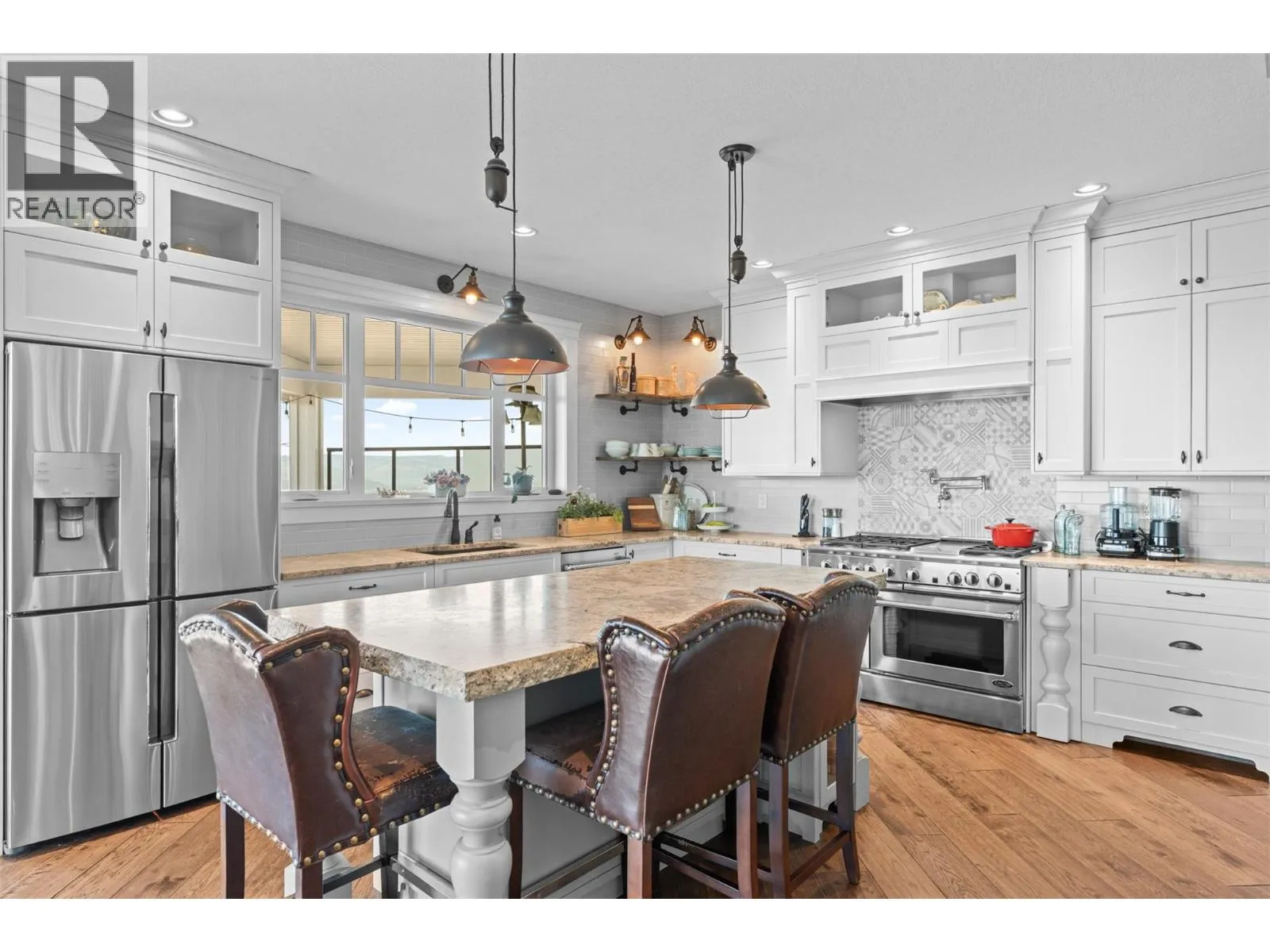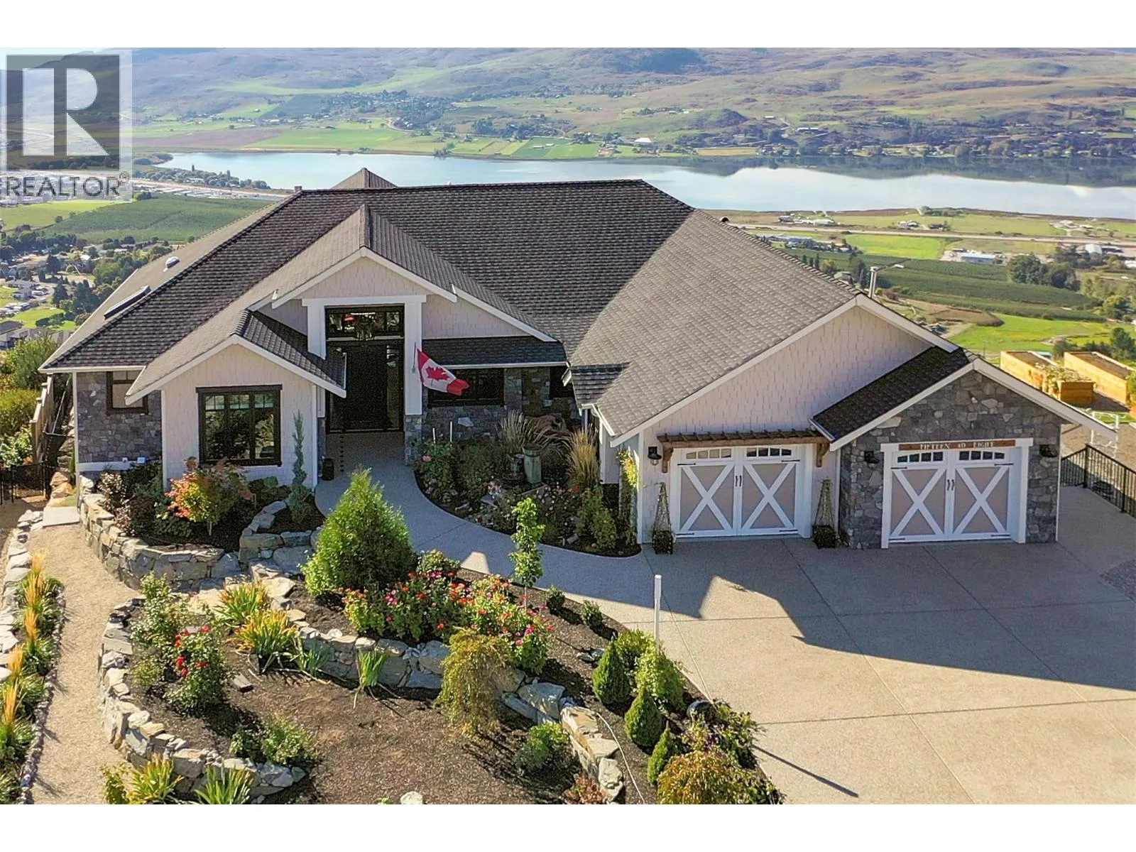 What a Masterpiece! Exceptional 5000sqft, 5 bed, 4 bath home offering stunning views of three lakes, surrounding mountains, and valley from nearly every room. Ideally positioned on one of the most desirable lots, perched away from neighbouring homes to fully capture its elevated setting and panoramic scenery. Bright open-concept design features 16-ft vaulted ceilings in the living room, tray ceilings