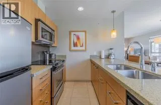 TOP FLOOR – LAKE VIEW. This 1 bedroom top floor unit has an oversized patio that provides views of the lake, mountain and town. Fully furnished, modern, open concept with a full kitchen, dining room, living room with a pull out queen size couch, and king size bed in the master bedroom and in-suite laundry. Four piece bath. 2