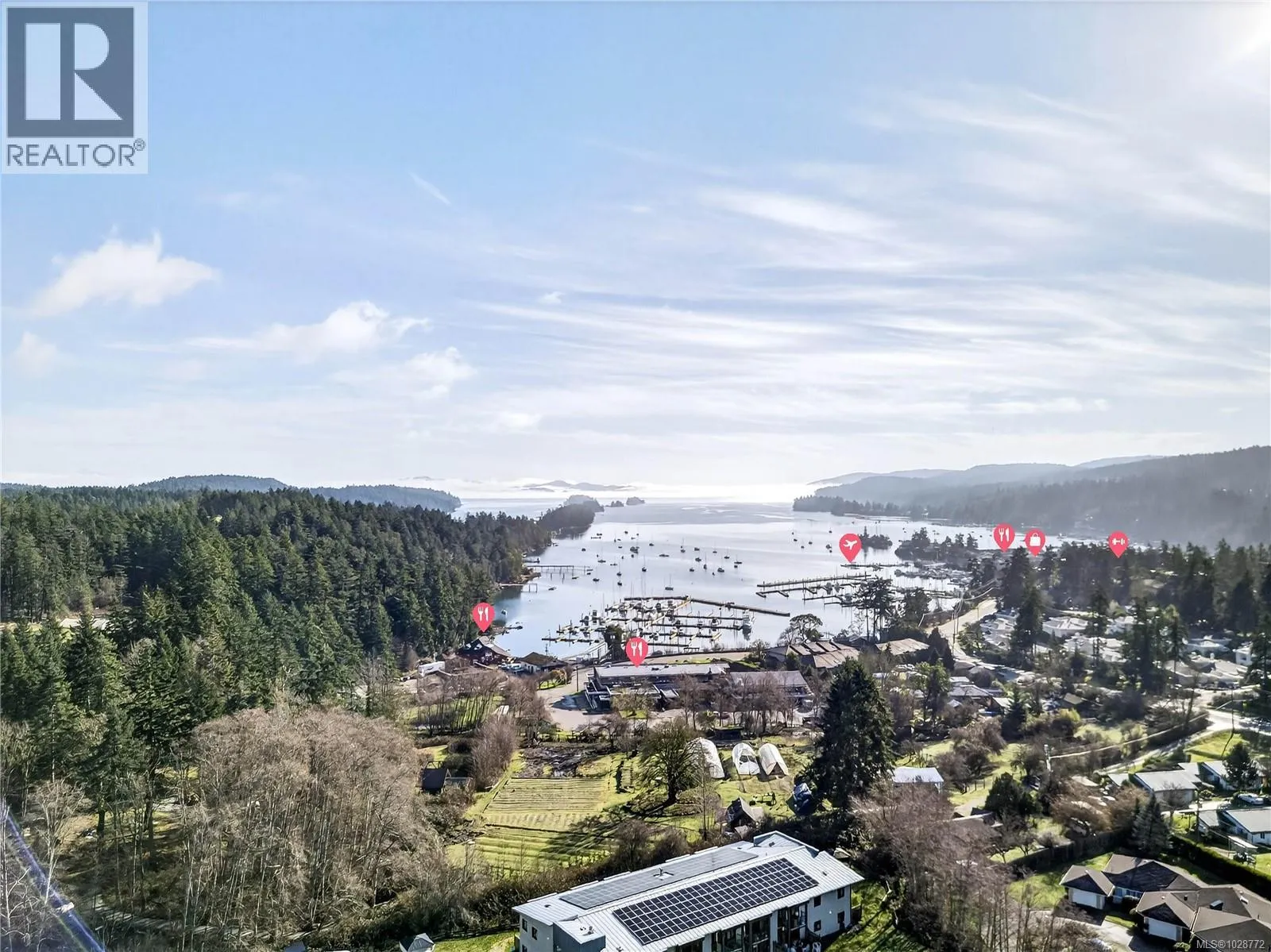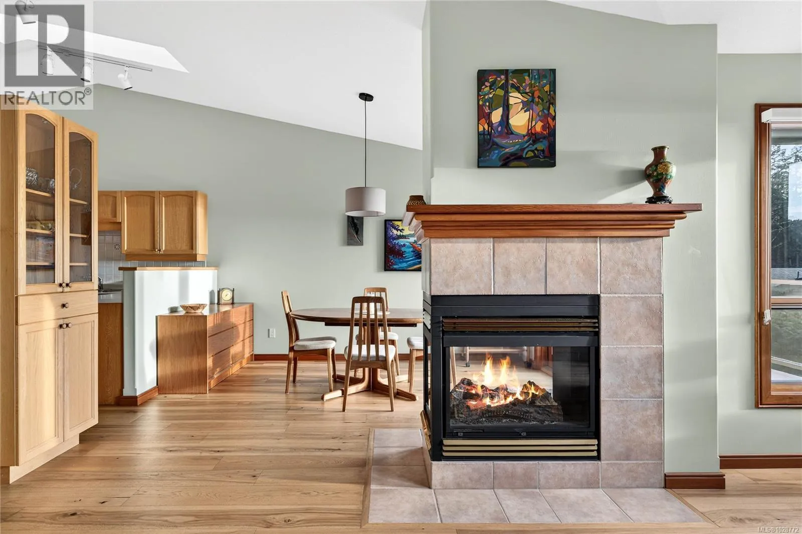 Elegant Townhome with Sublime Ocean Views. Experience sophisticated island living in this immaculate, bright, and quiet townhome, perfectly situated in one of Salt Spring’s premier developments. The open-concept upper level main floor features wide plank wood flooring, vaulted ceilings, solid oak kitchen cabinetry, and a cozy three-sided glass propane fireplace. It flows seamlessly onto an East-facing sundeck for spectacular Ganges