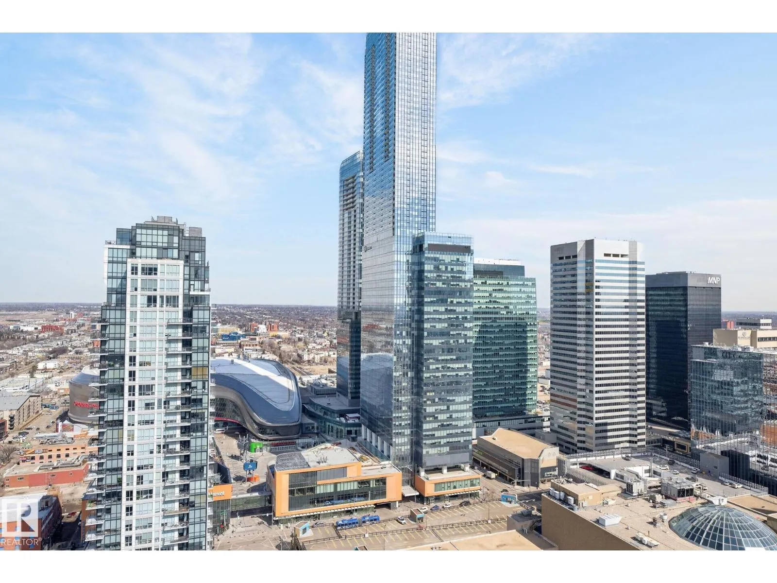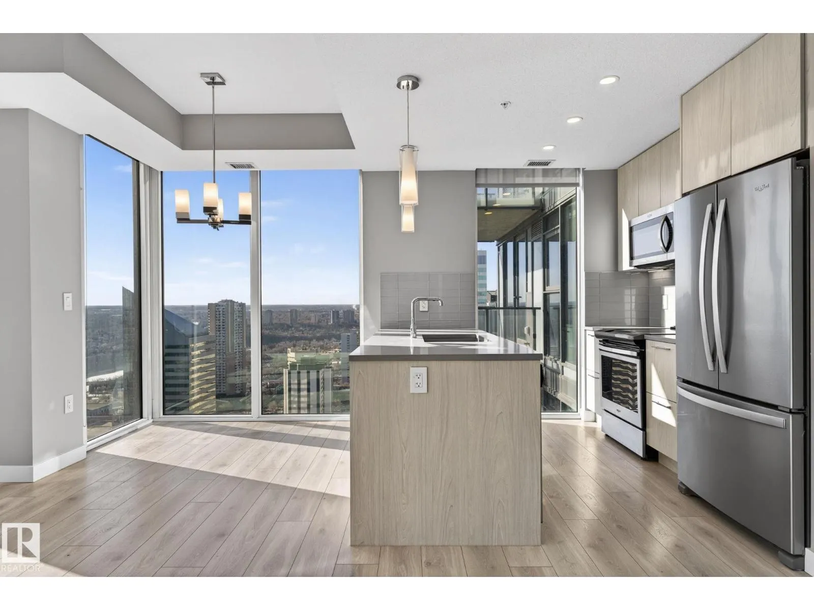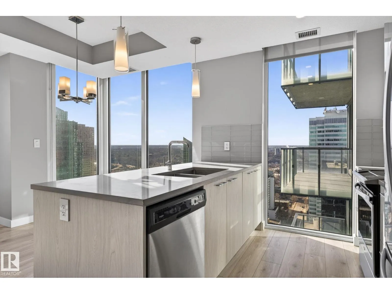 Perched on the 31st floor, this stunning condo offers breathtaking panoramic views—stretching from the north over Rogers Place & the vibrant Ice District, all the way south across the picturesque river valley. Step inside & be immediately captivated by floor-to-ceiling windows that flood the space with natural light, creating an airy and inviting atmosphere. The open-concept layout features a spacious