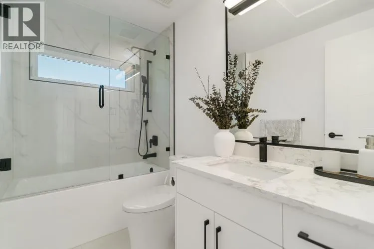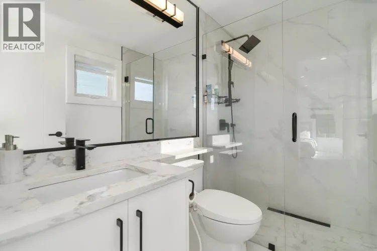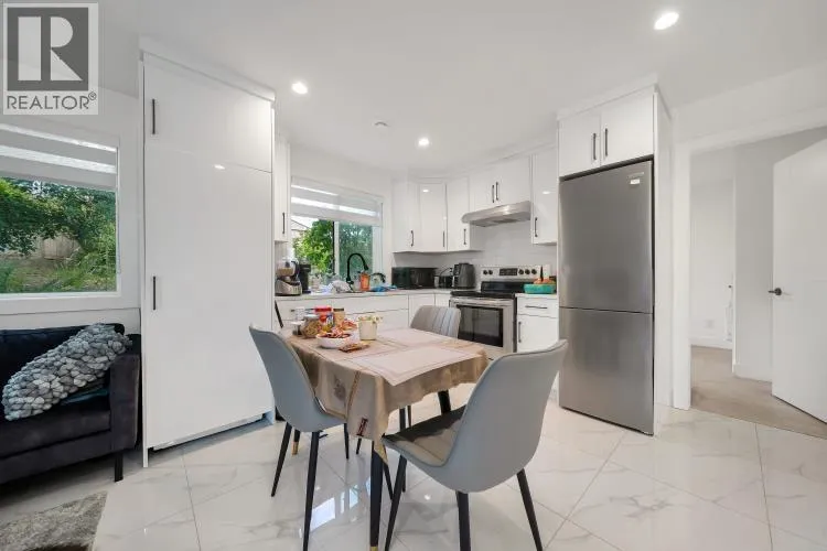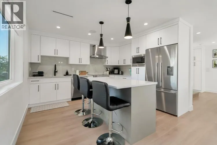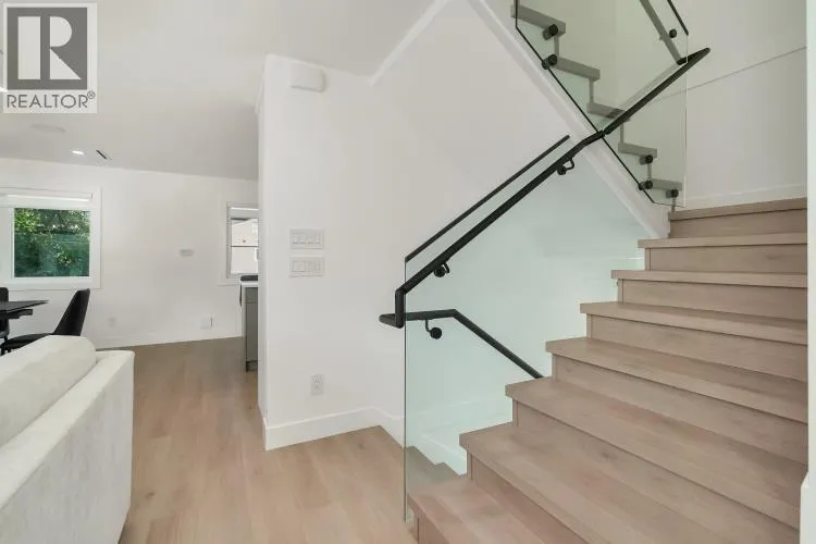 This stunning 5- bedroom side-by-side duplex offers 2205 sqft of luxurious living space in a prime location close to Burnaby North Secondary School and Burnaby Mountain Golf Course. The bright creek side duplex has open concept layout that features a modern kitchen with sleek quartz countertops, stylish backsplash, and premium FISHER & PAYKEL appliances. Enjoy year round comfort with HRV,