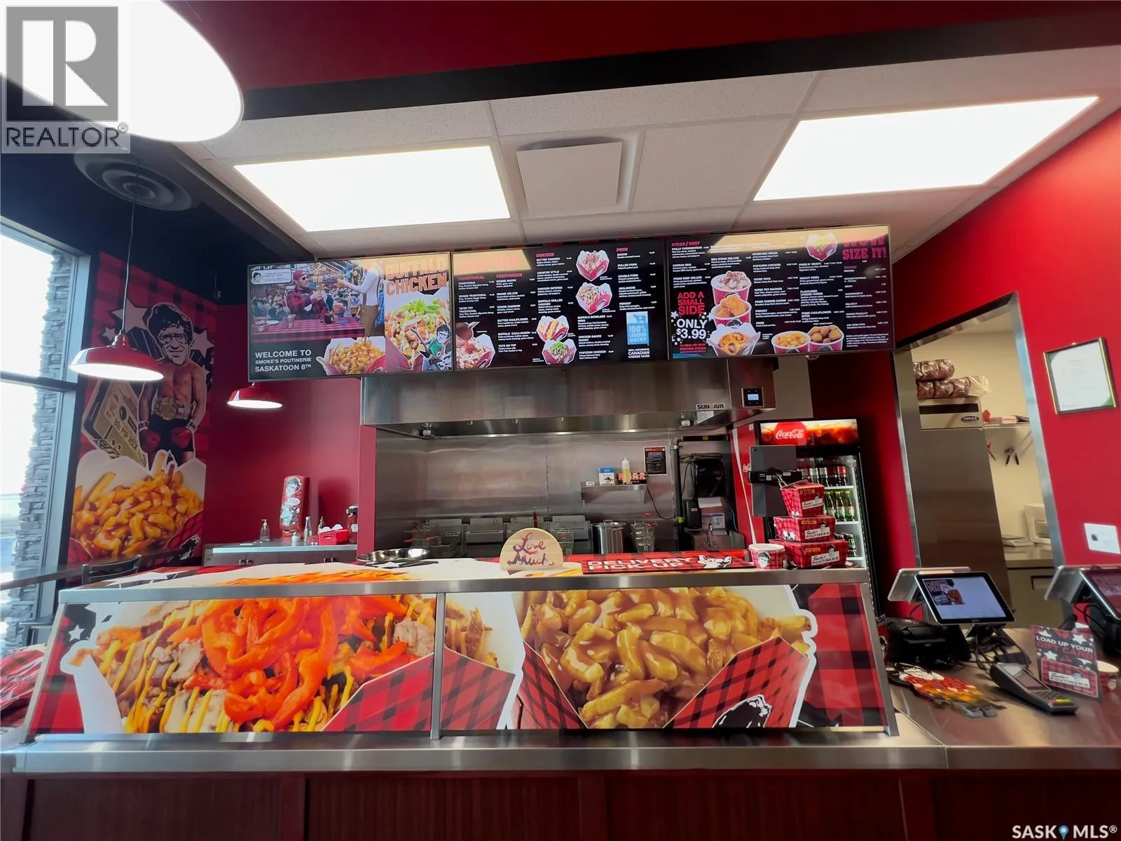 Exceptional Franchise Opportunity on 8th Street East! > Step into a highly successful, turn-key business with this Smoke’s Poutinerie franchise located in one of Saskatoon’s busiest retail corridors. Operating in a pristine, modern space (1,151 sq. ft.), this location boasts excellent street visibility, massive Pylon signage, and ample storefront parking. The store is fully equipped with top-tier commercial kitchen equipment,