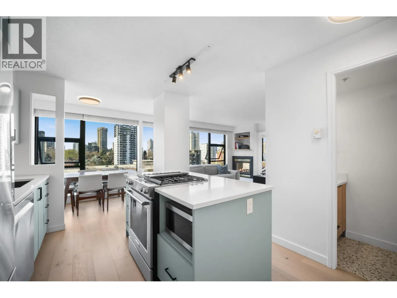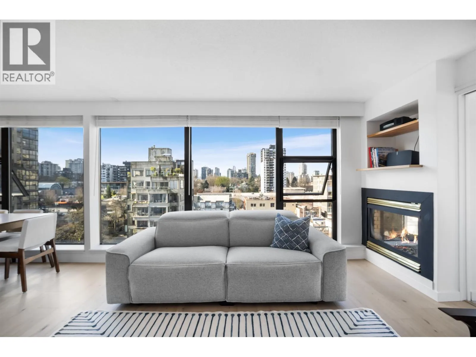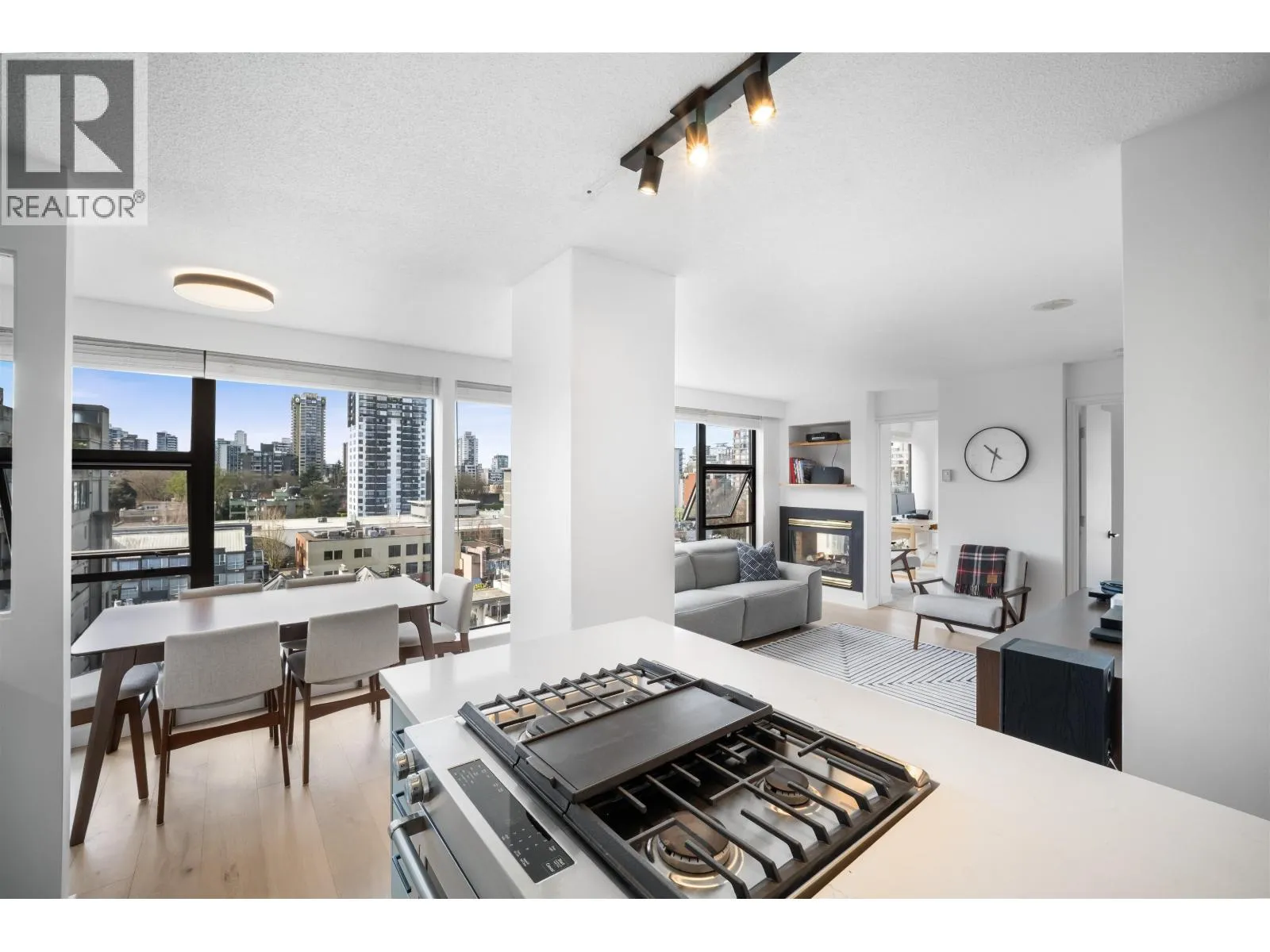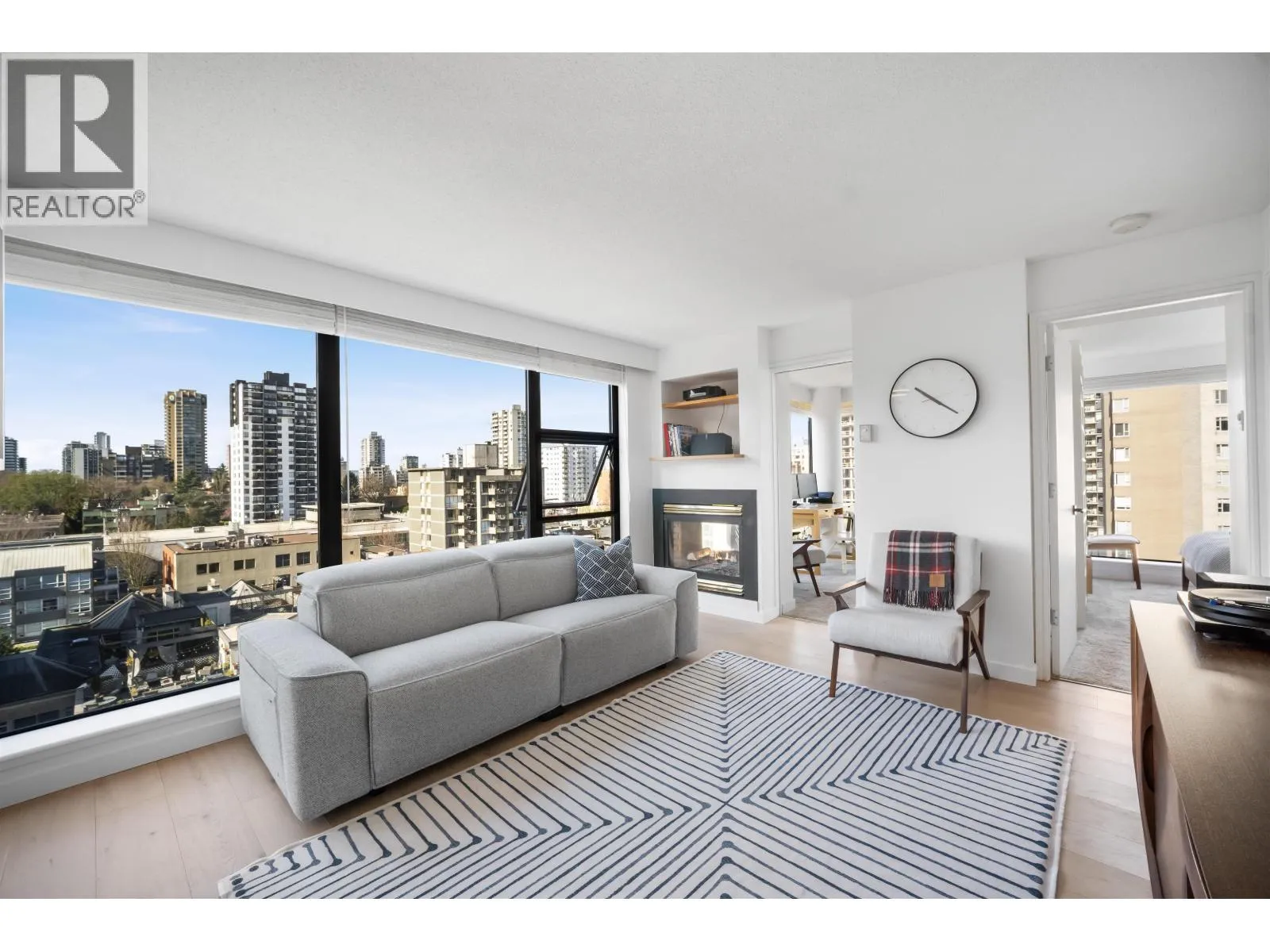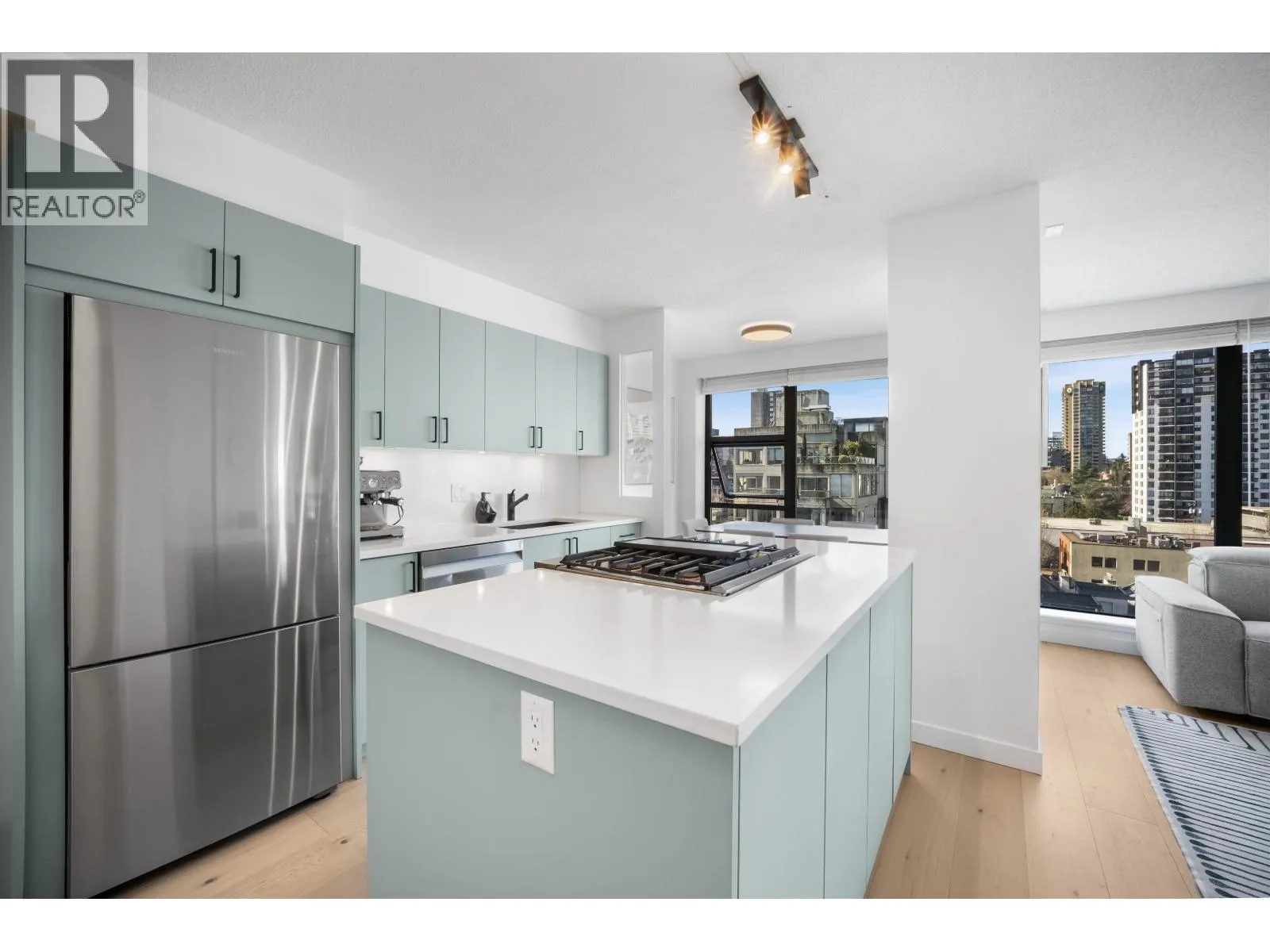 Gateway to the best of the West End. Positioned at the quiet edge of Alberni, this corner home sits at the hinge of city energy and Stanley Park calm, with floor-to-ceiling windows drawing in natural light and outlooks toward the North Shore mountains, Lost Lagoon, and Stanley Park. Classy, quality updates elevate a smart, efficient layout; engineered hardwood floors, quartz