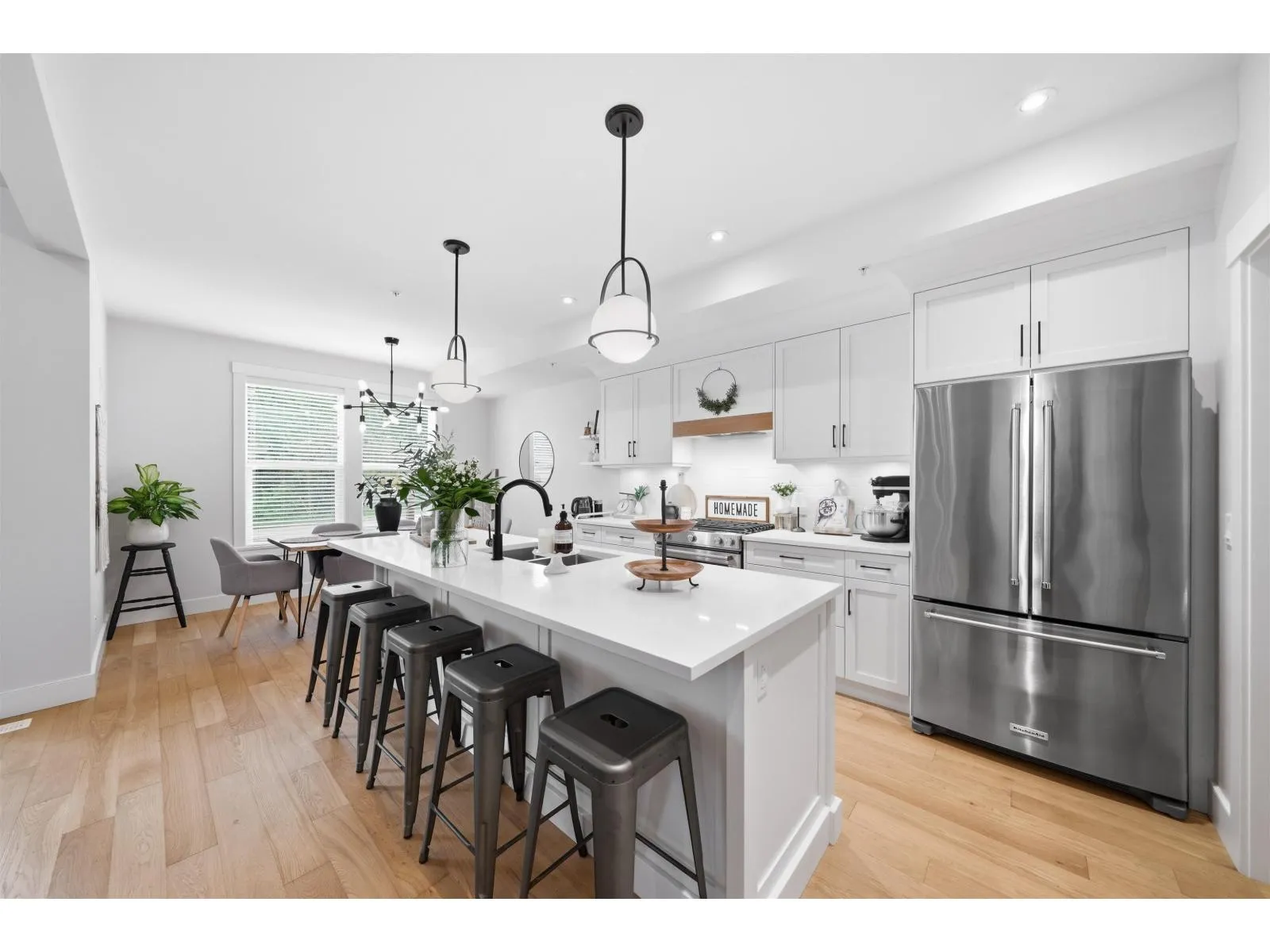 Step into refined, executive-style living in the heart of Murrayville. This beautifully appointed residence blends modern design with generous family space, offering 4 bedrooms and 4 baths across a thoughtfully designed layout. The main level impresses with its airy, open-concept living, dining, and kitchen area, where vaulted ceilings and expansive windows flood the home with natural light. A chef-inspired kitchen