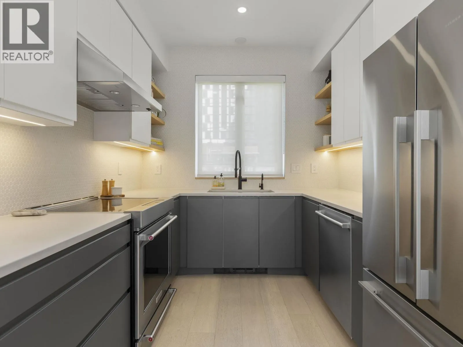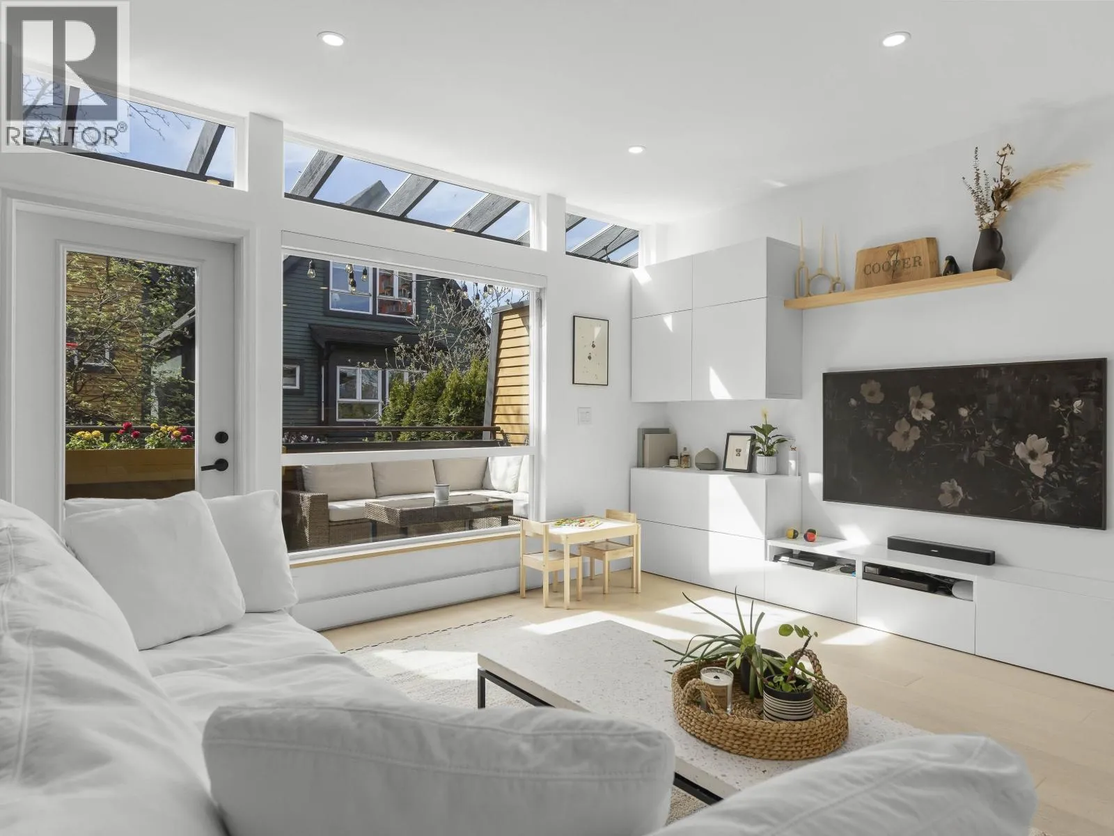 THIS unique, Scandi-style three-bedroom TH is an aesthetic transformation that resonates with Strathcona´s indie vibe: welcome to “Awesometown”, a 2003-built, XX-home community. The smart layout is centred by the clean lines of the bright living area – large windows, custom millwork, built-in storage and window bench seating and minimalist, design-forward dual-tone kitchen. A separate 3rd bedroom is also an ideal