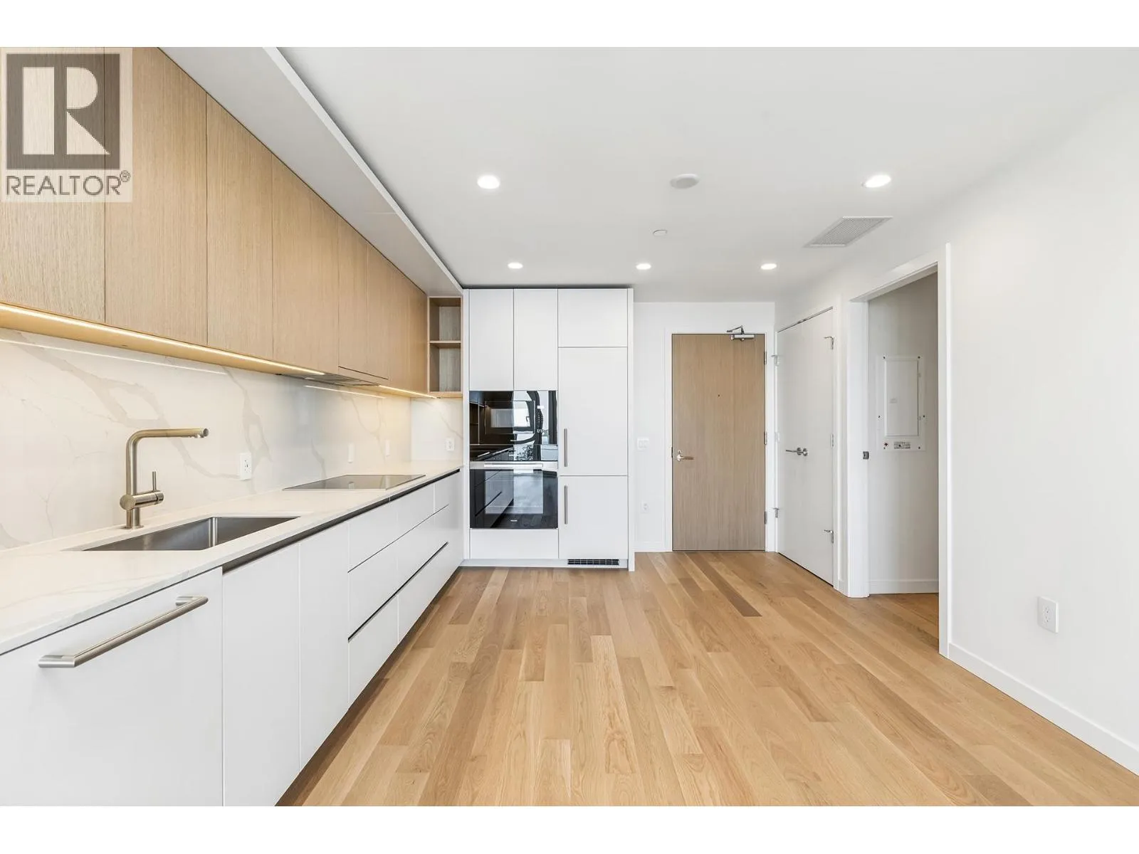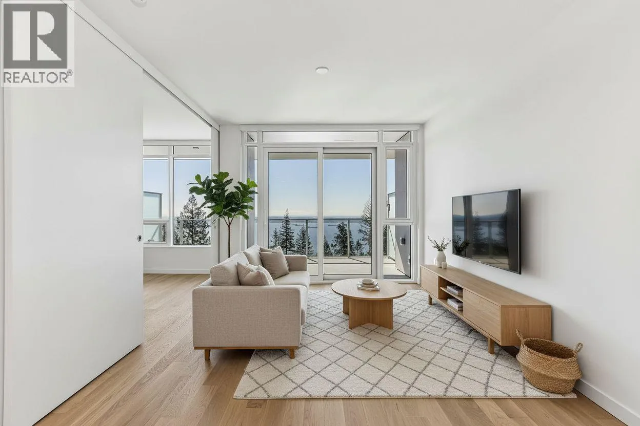 Panoramic Views. Brand New. Uplands Luxury. Welcome to “Hawksley” by Beedie. This 670 sq/ft 1-bed + den is the highest south-facing unit in the building, offering massive views of the Georgia Strait and Vancouver skyline. Refined interiors by Battersby Howat feature 9′ ceilings, engineered hardwood, and a Miele kitchen with a 30″ induction cooktop. The 200 sq/ft covered balcony includes