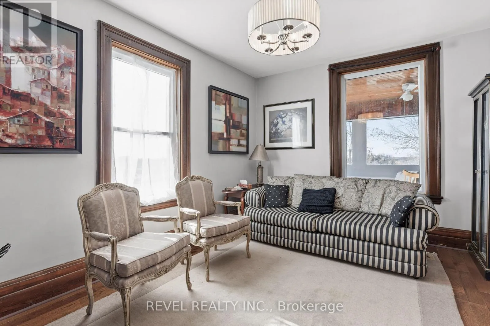 Century farmhouse, set on an expansive 98.73 acres of pure country serenity. This beautifully maintained FULLY FURNISHED 4-bed, 2-bath home blends timeless character with meaningful. Step inside through the enclosed front porch-the ideal spot for your morning coffee or to unwind with sunset views. The interior showcases stunning hardwood flooring, extra-high baseboards, and elegant crown mouldings, preserving the warmth