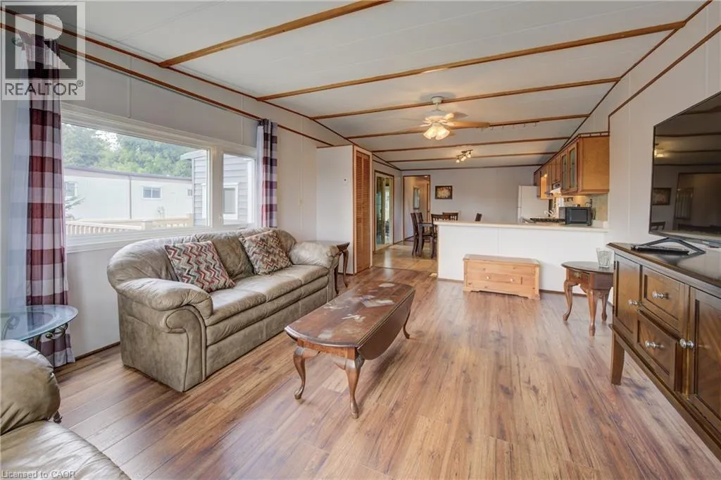 Enjoy easy, affordable year-round living in the welcoming Spring Valley Parkbridge community. This well-cared-for 2-bedroom mobile home offers a bright, open-concept layout that feels comfortable and inviting from the moment you step inside. A standout feature is the two versatile 3-season rooms—ideal for morning coffee, casual entertaining, or creating your own hobby space—plus a handy garden shed for additional storage.