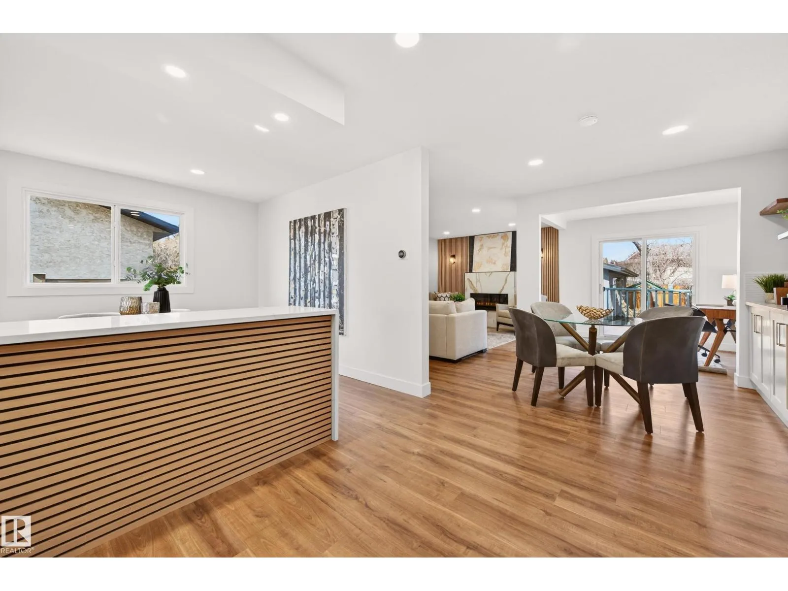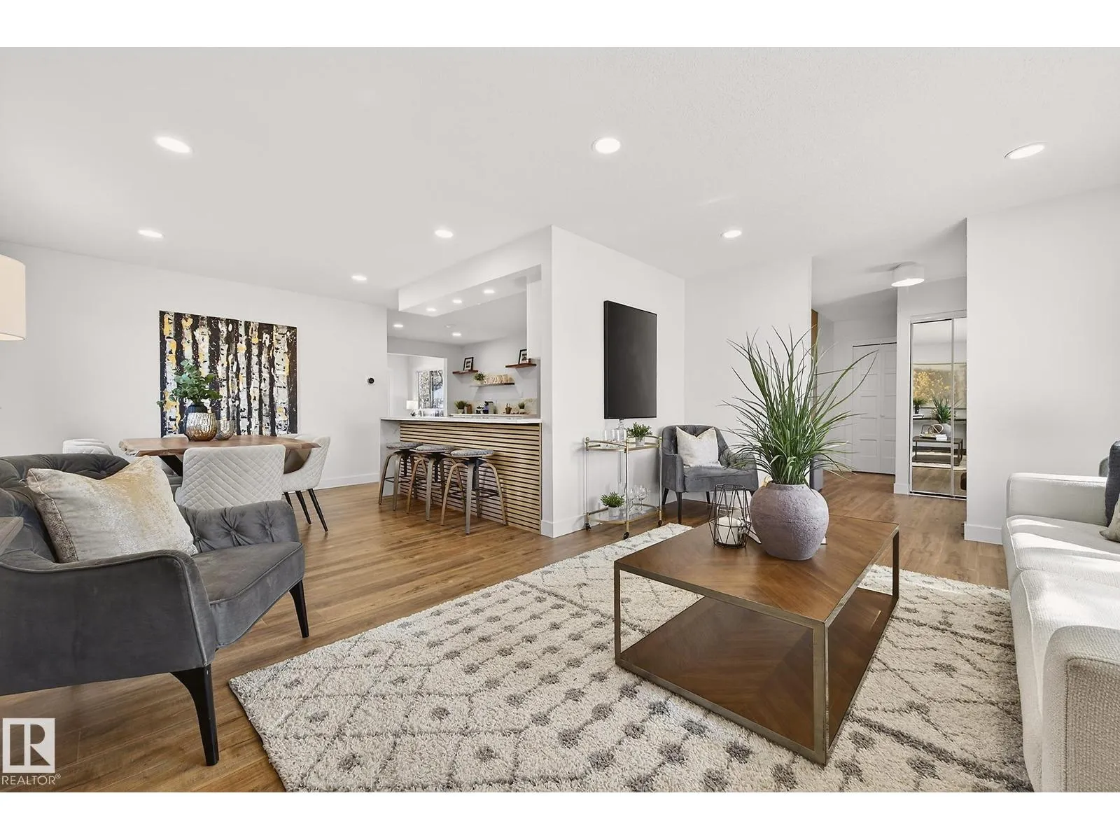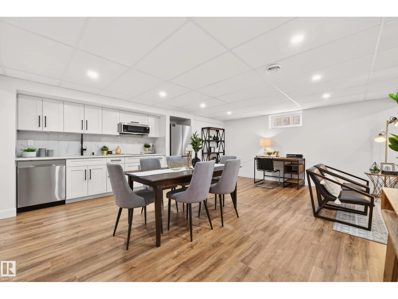 Situated in the family-friendly community of Belmead, this beautifully renovated home offers over 2,880 sq ft of finished living space. The open layout is featuring a spacious living room with an electric fireplace, a modern kitchen with stylish cabinets, tile backsplash, SS appliances, quartz countertops, pantry, and dining area adjacent to the kitchen. For convenience, a main floor laundry